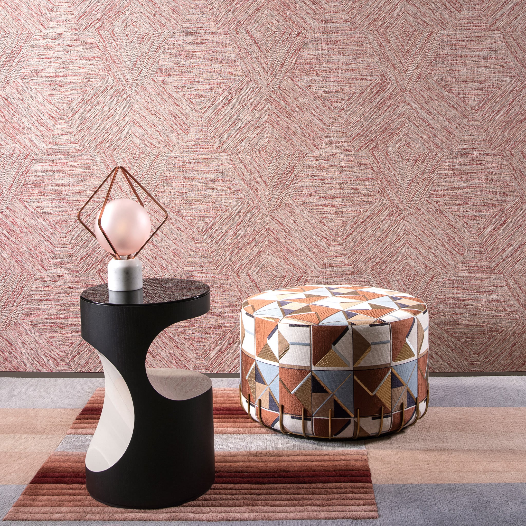 Pentagono has the soft, tactile appeal of luxurious bouclé. The fabric was designed with a graphic pattern of pentagons. This sleek design creates an interesting contrast with the typical casual look of bouclé.