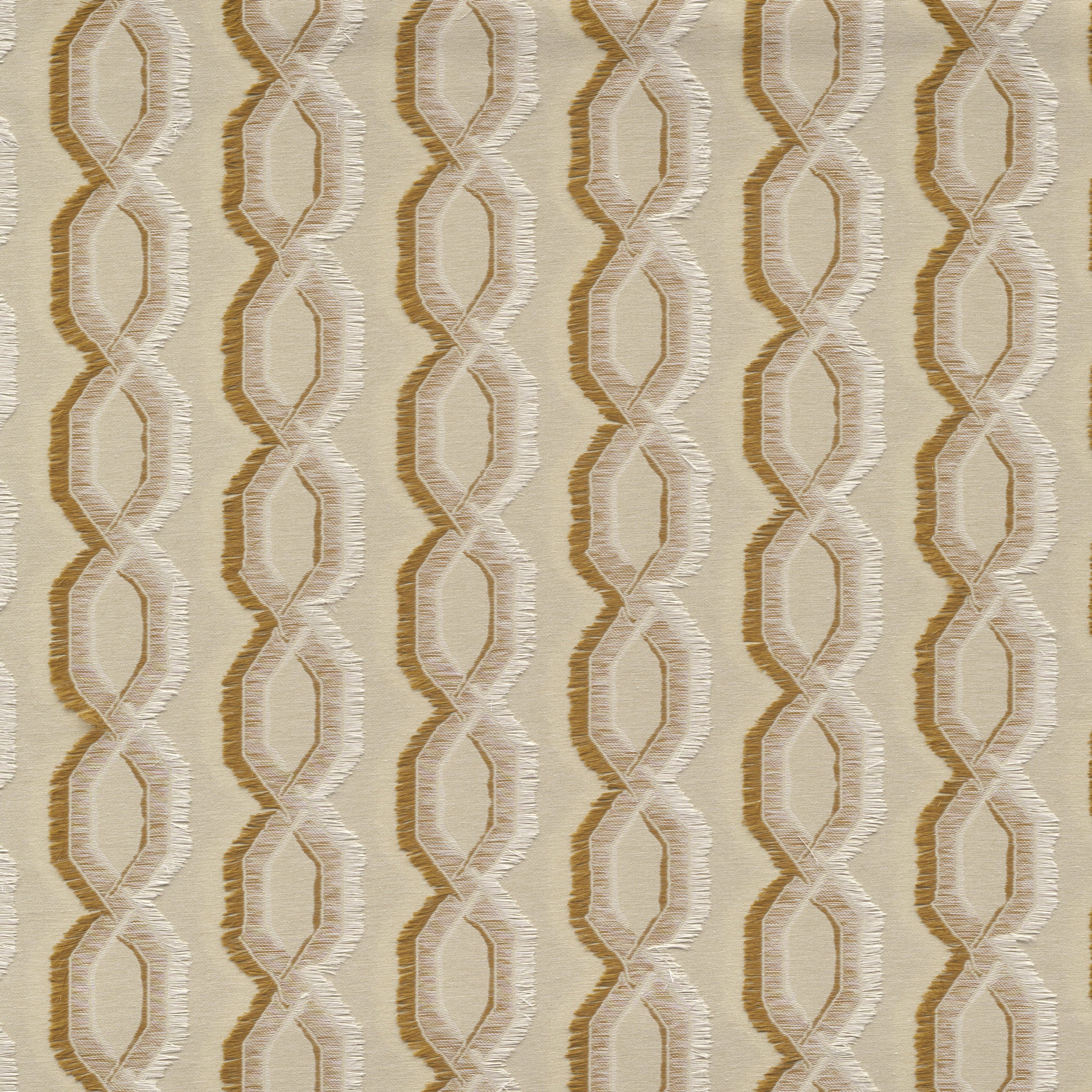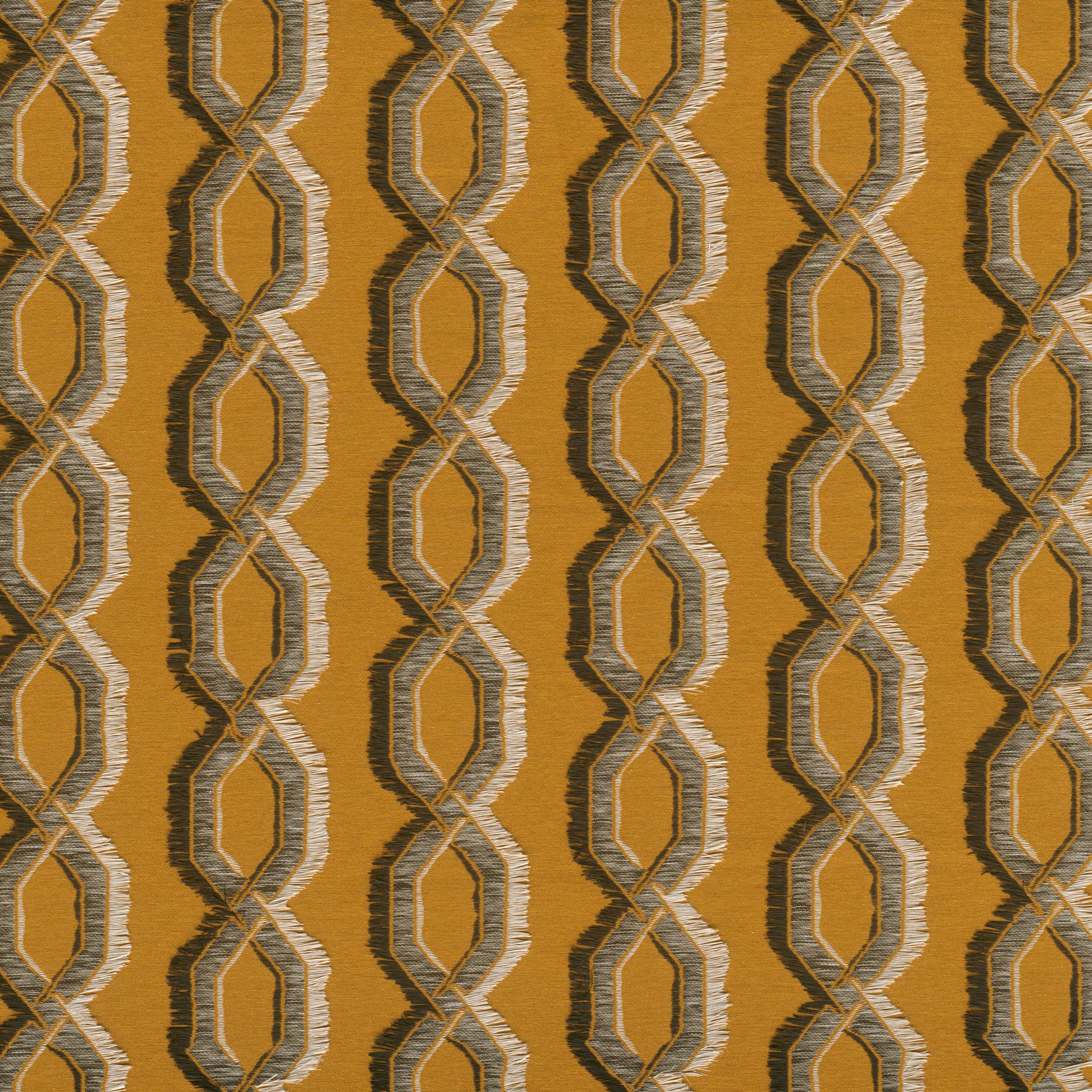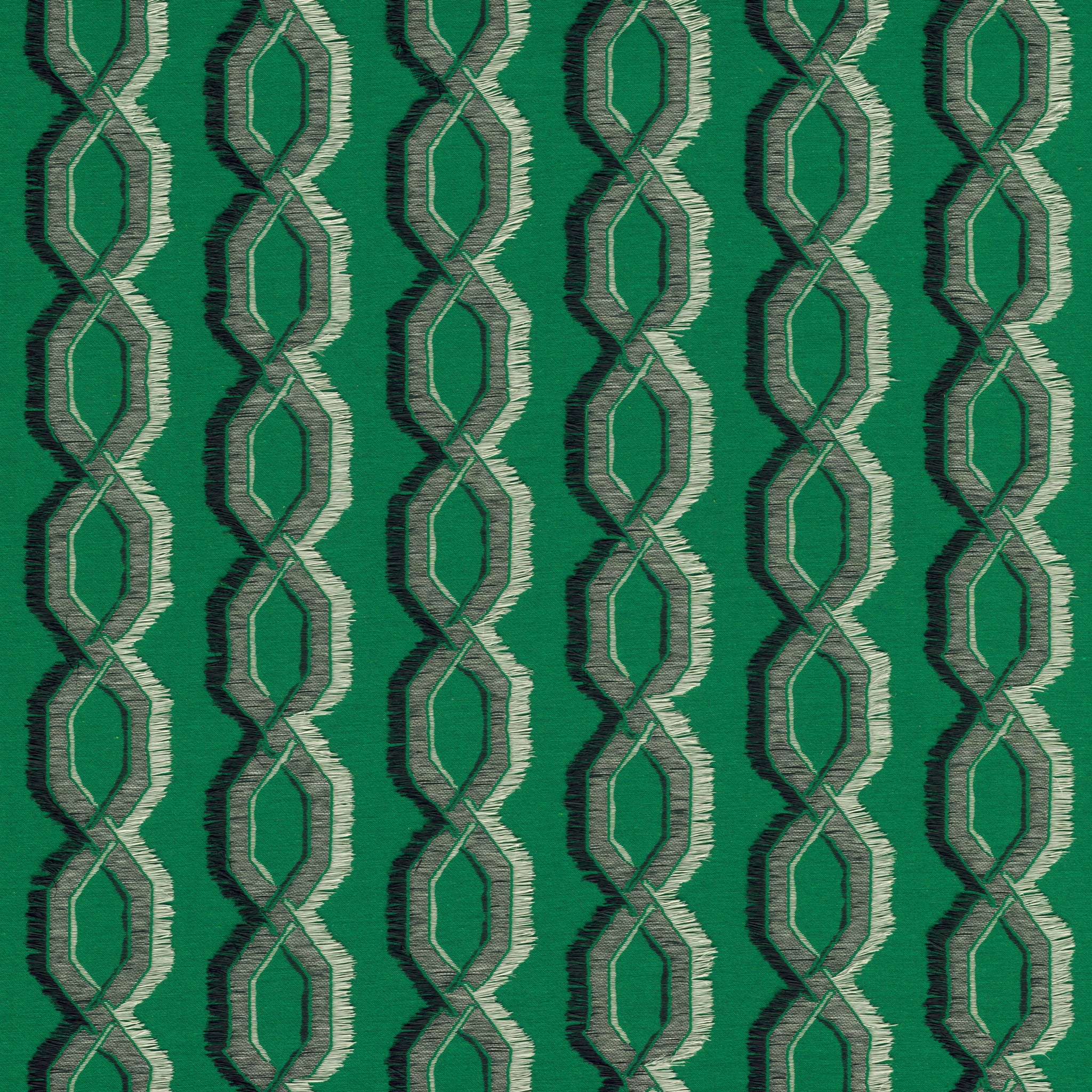 A stunning jacquard design, incorporating a whimsical zig-zag pattern in the weave of the fabric, with the loose threads creating a spectacular effect on the wall.