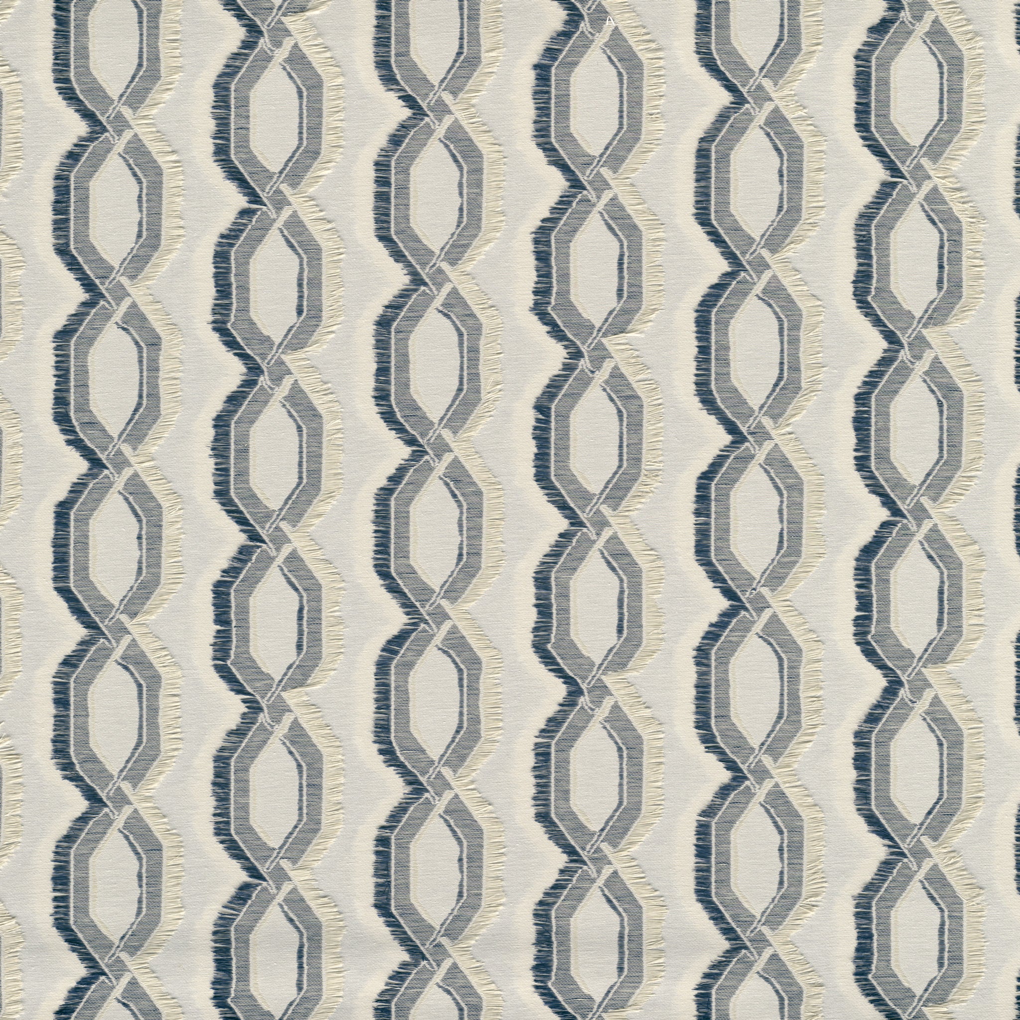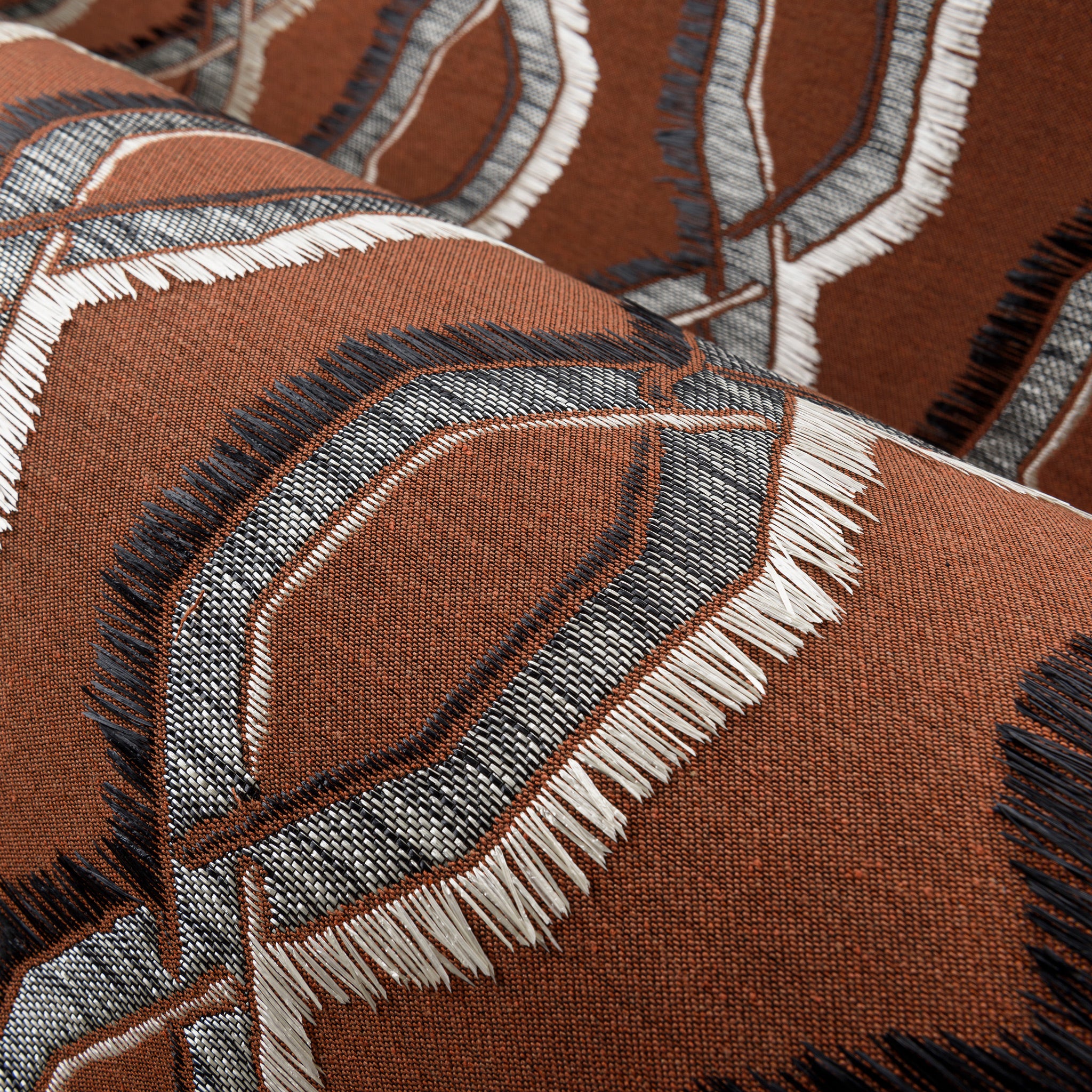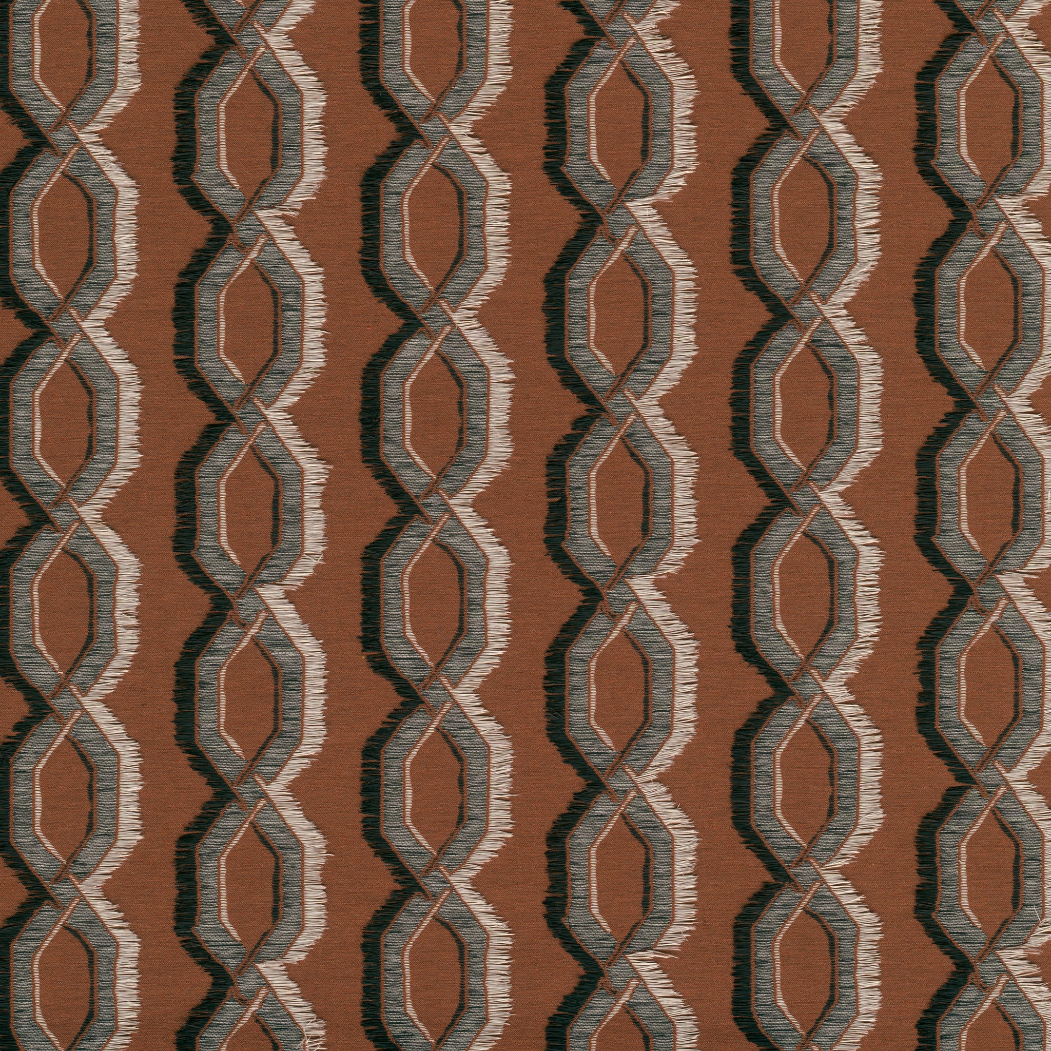 A stunning jacquard design, incorporating a whimsical zig-zag pattern in the weave of the fabric, with the loose threads creating a spectacular effect on the wall.