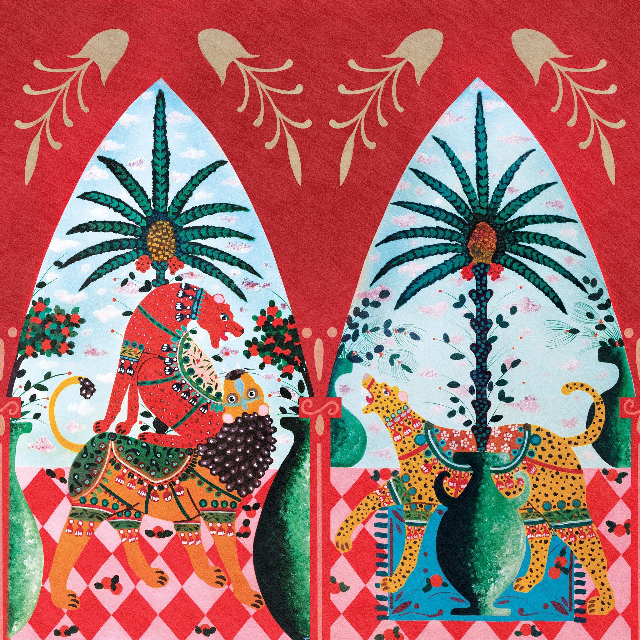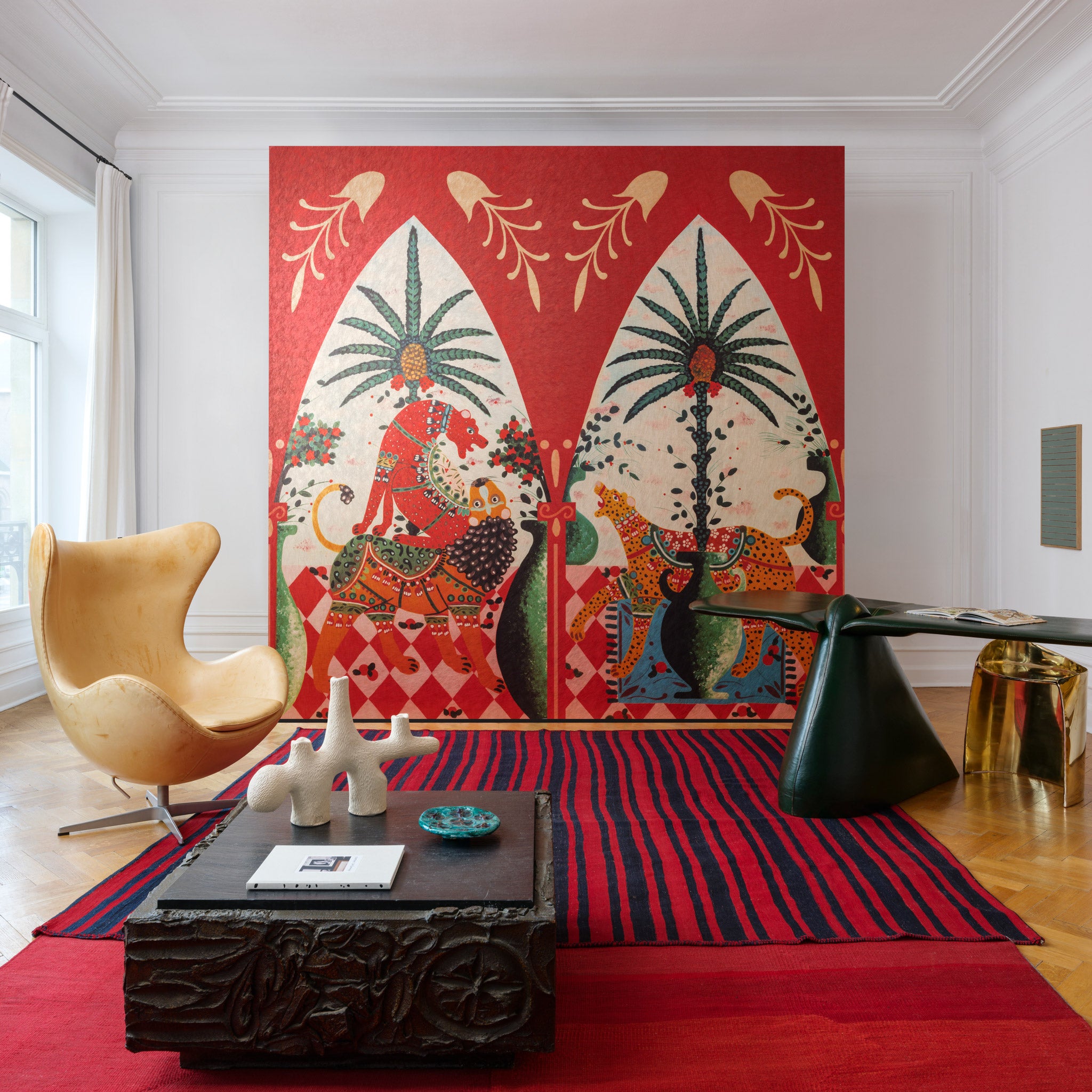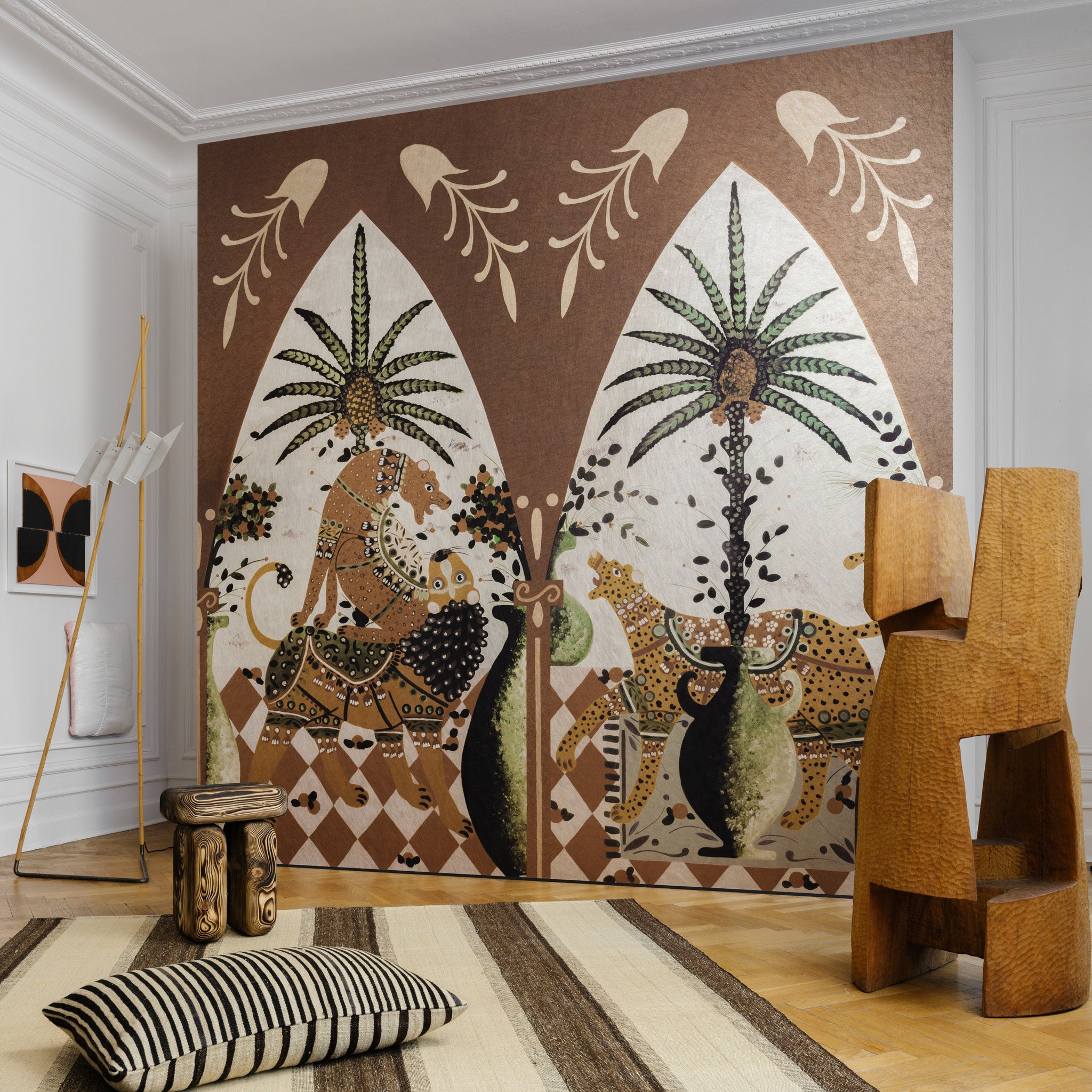 The 'Icarus' wallpaper collection by Arte draws inspiration from Greek culture, incorporating ancient Sicilian influences and mythical scenes. This bold panorama features the legendary Armalu, meaning "animal" in Sicilian, and boasts a vintage effect with a parchment paper look.