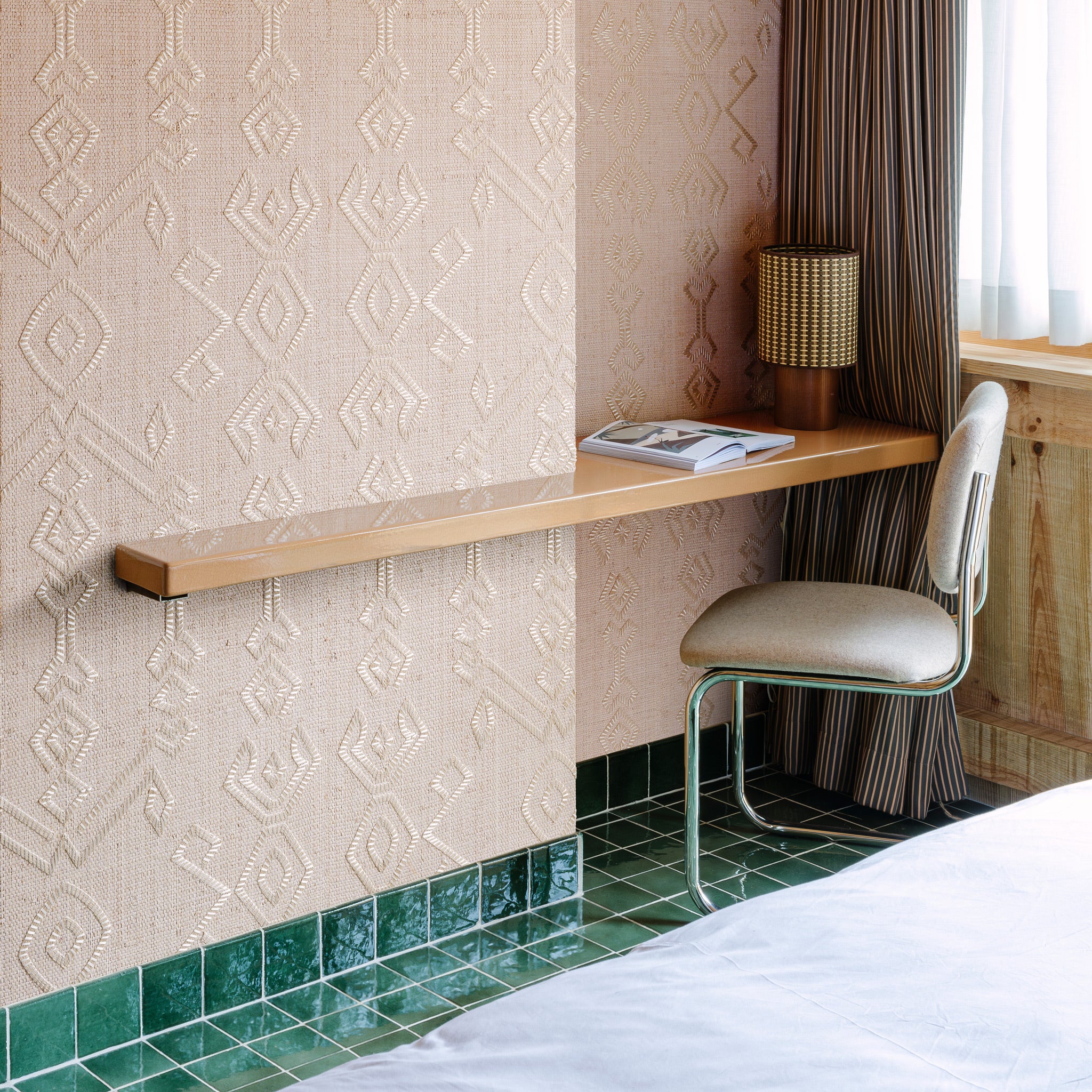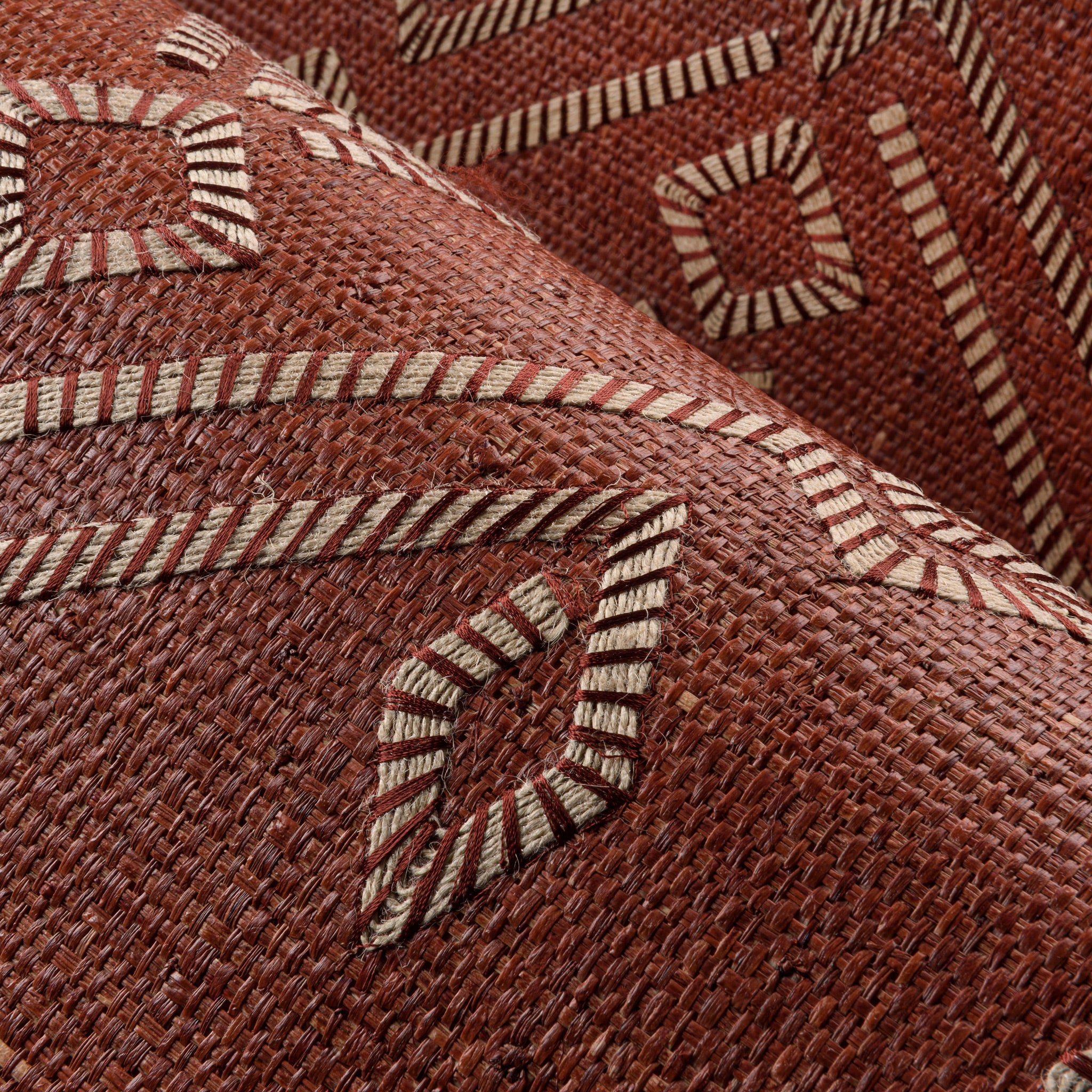 Indomito is an innovative blend of strong, organic substances that results in a striking geometric motif. This intricate design is intricately stitched onto a backdrop of woven raffia and hessian to create a product reminiscent of the untamed spirit captured by the Sicilian term.