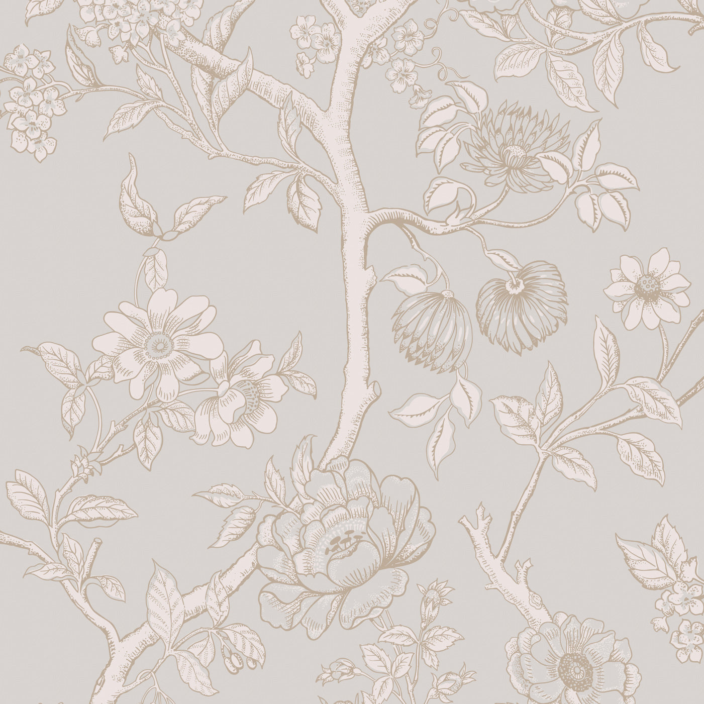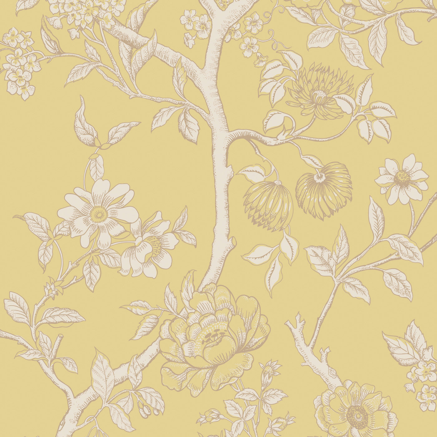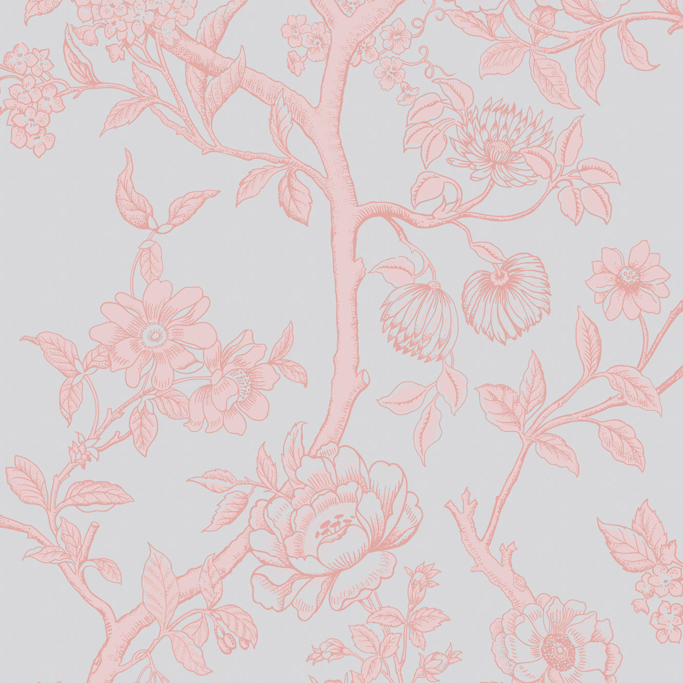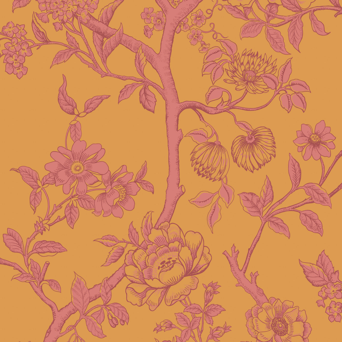 Paradise Tree features expansive branches that form a dense, vibrant canopy of leaves and blossoms. Available in gentle pastel shades such as Dove Grey, Pastel Blue with Soft Pink, Buttercup Yellow with Cream, and Cornflower Blue with Soft White, as well as lively, uplifting hues like Tangerine with Hibiscus and Emerald with Petal Pink. The Emerald base color pays homage to the 19th-century greens favored in aristocratic residences, offering a range of refined interior design possibilities.