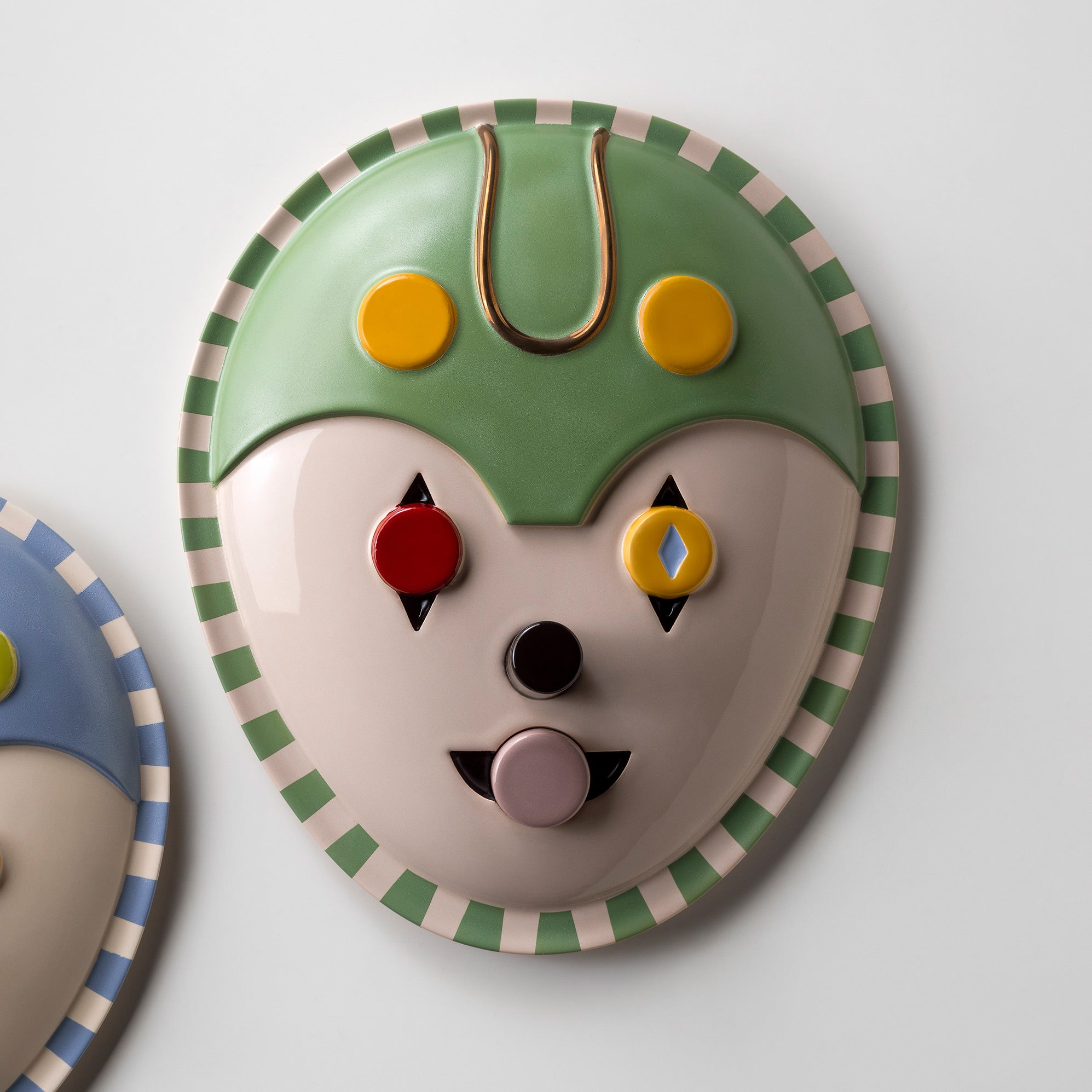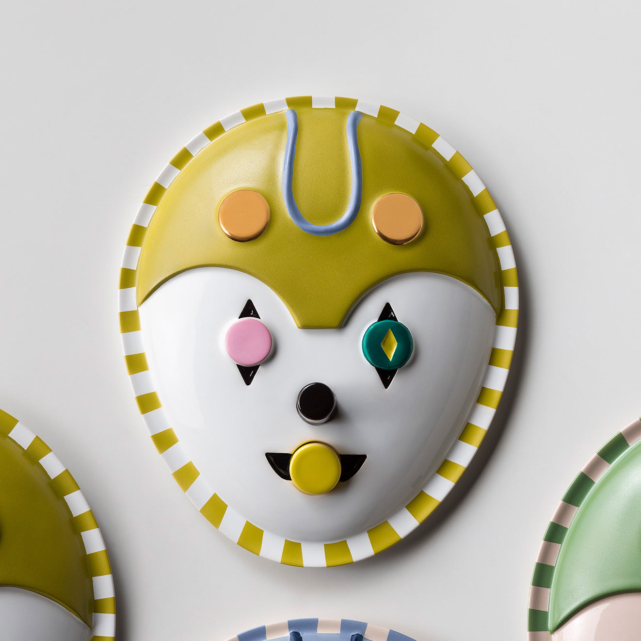 Designed by Jaime Hayon for Bosa. Handmade in Italy by skilled craftsman, these bold, decorative wall masks are adorned with Hayon's signature aesthetic.