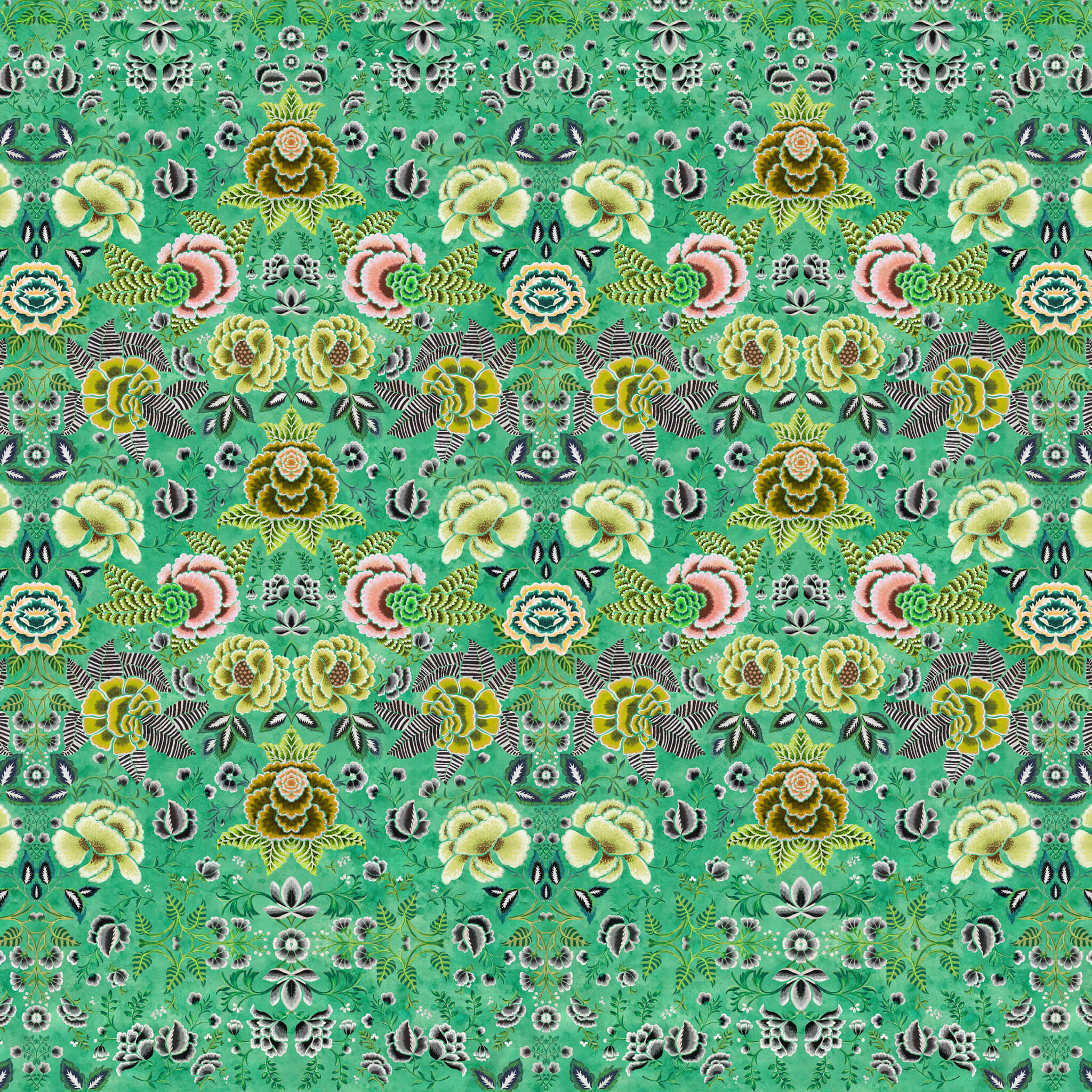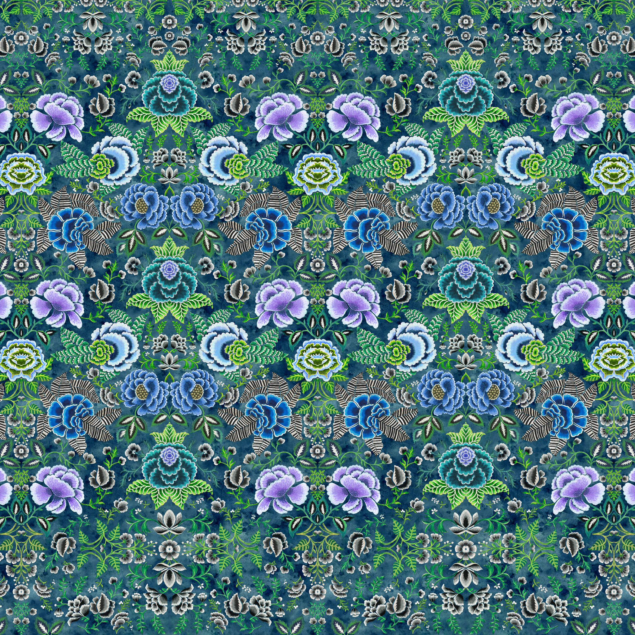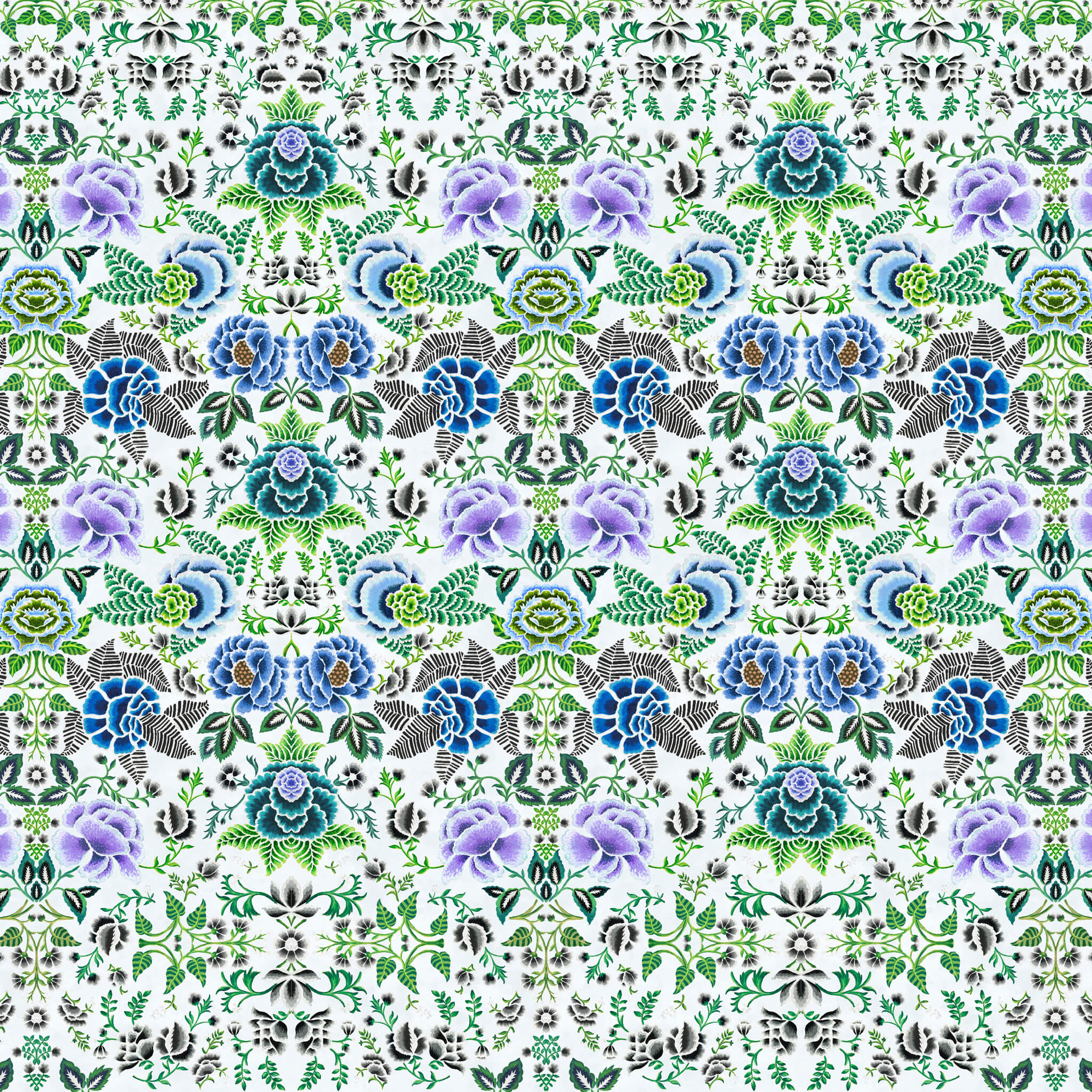 Striking, finely hand painted renderings of roses with geometric leaves and foliage create a versatile contemporary wallpaper panel. This statement wallpaper is sold as a single roll incorporating 2 x matching lengths to be hung in sequence to create a complete panel 140cm wide x 300cm high. Can be joined in multiples according to your wall width and trimmed in the height if required.