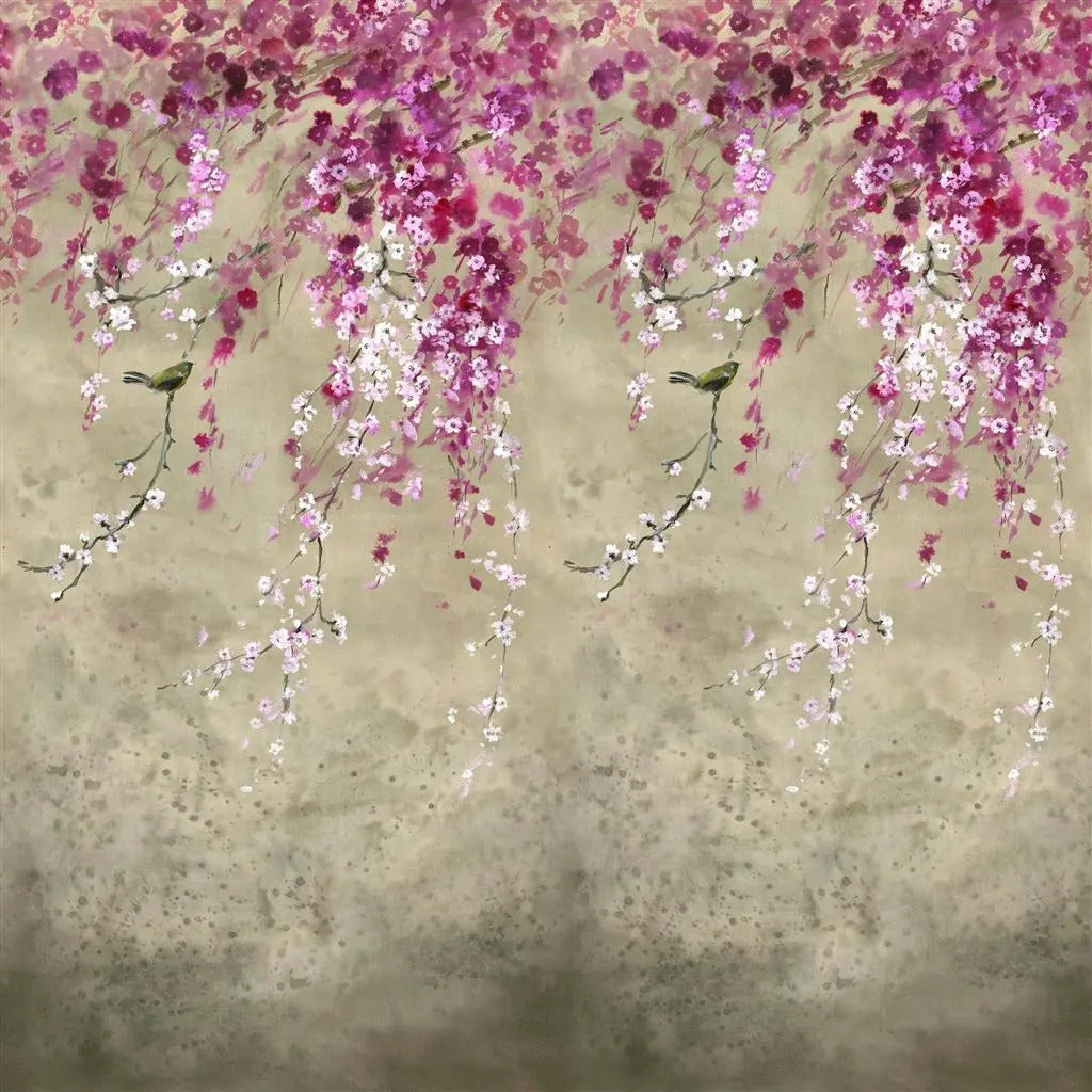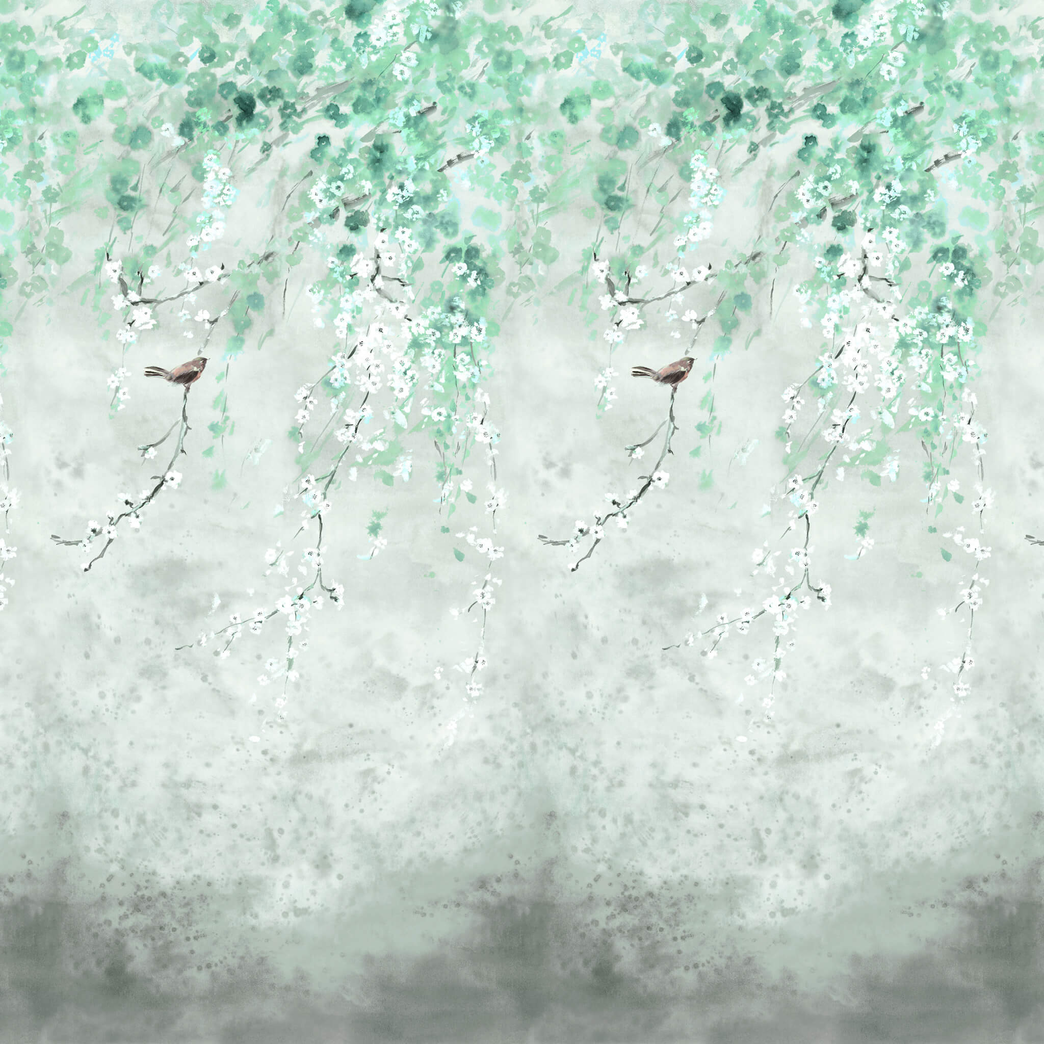 A solitary cherry blossom tree takes root amidst a painterly, natural hued and delicately dappled ground. Sold as a single roll incorporating 2 x matching lengths to be hung in sequence to create a complete panel 140cm wide x 300cm high. Can be joined in multiples according to your wall width and trimmed in the height if required.