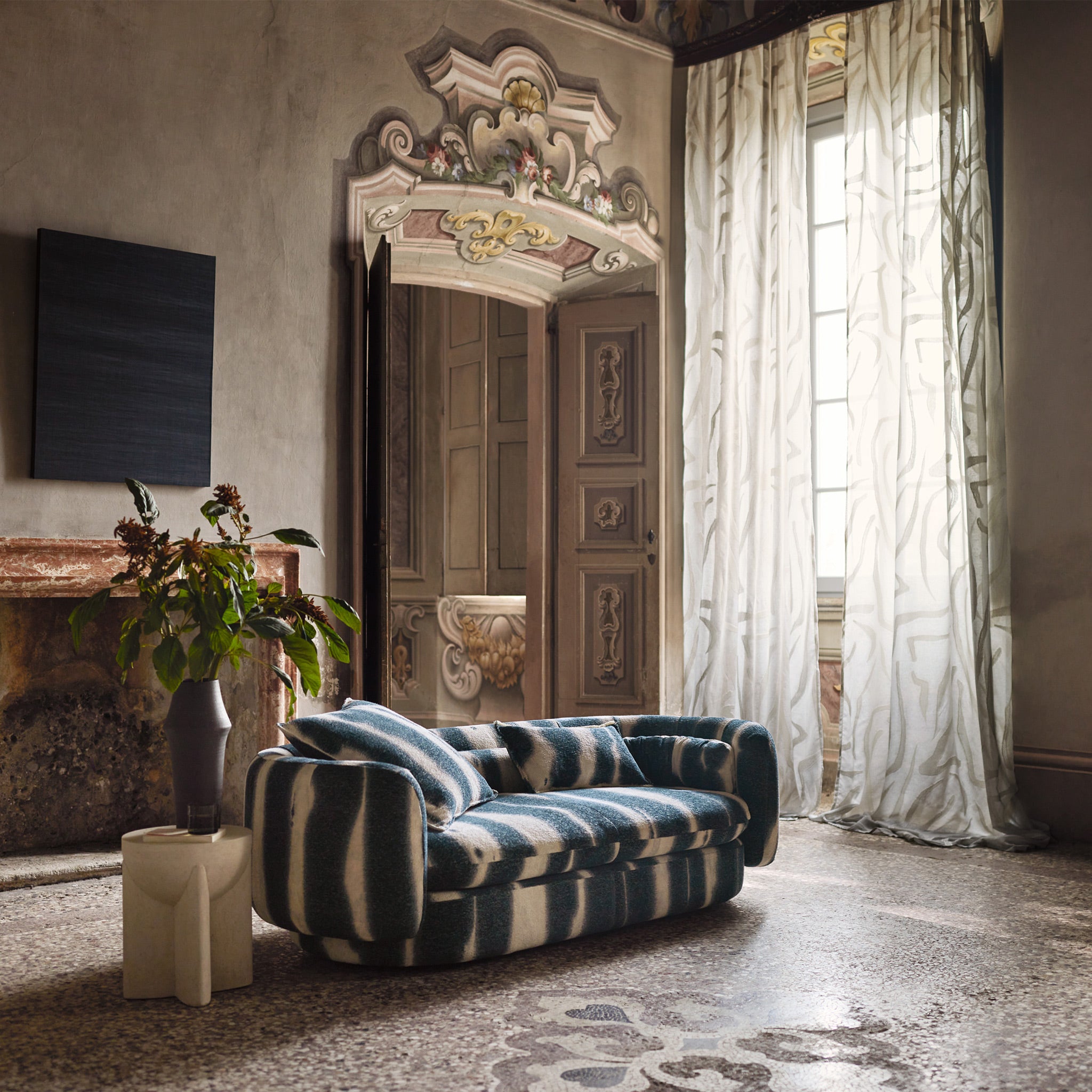 In a harmonious dance of artistry and craftsmanship, Xenia is a striking, heavyweight chenille weave, spray-dyed by hand to create artisanal marks that are rich in tone. With a sense of pure indulgence, the colour transitions from intense to more delicate, creating a dynamic and captivating effect.