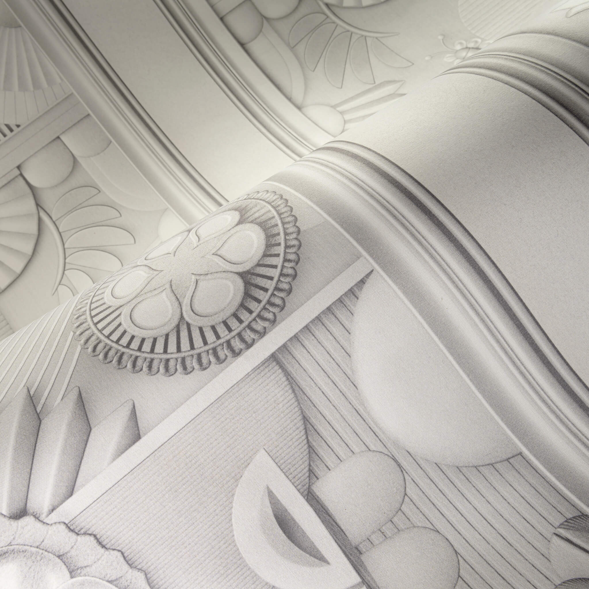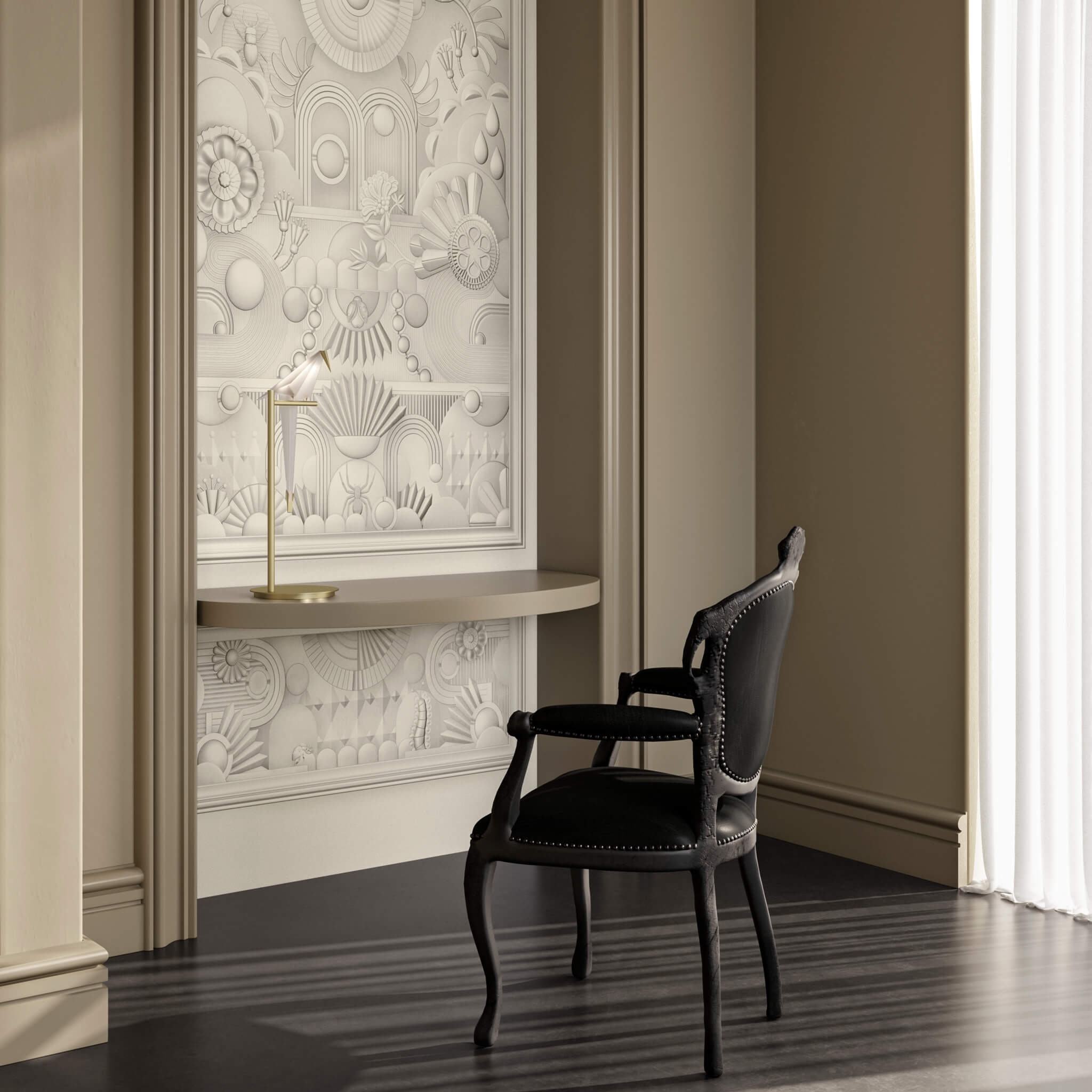 Greenhouse Gathering is a stunning wallcovering that draws inspiration from decorative moulding. The design imitates the sensation of peering through the glass panels of a Green House, uncovering the mesmerising marvels of lush flowers.