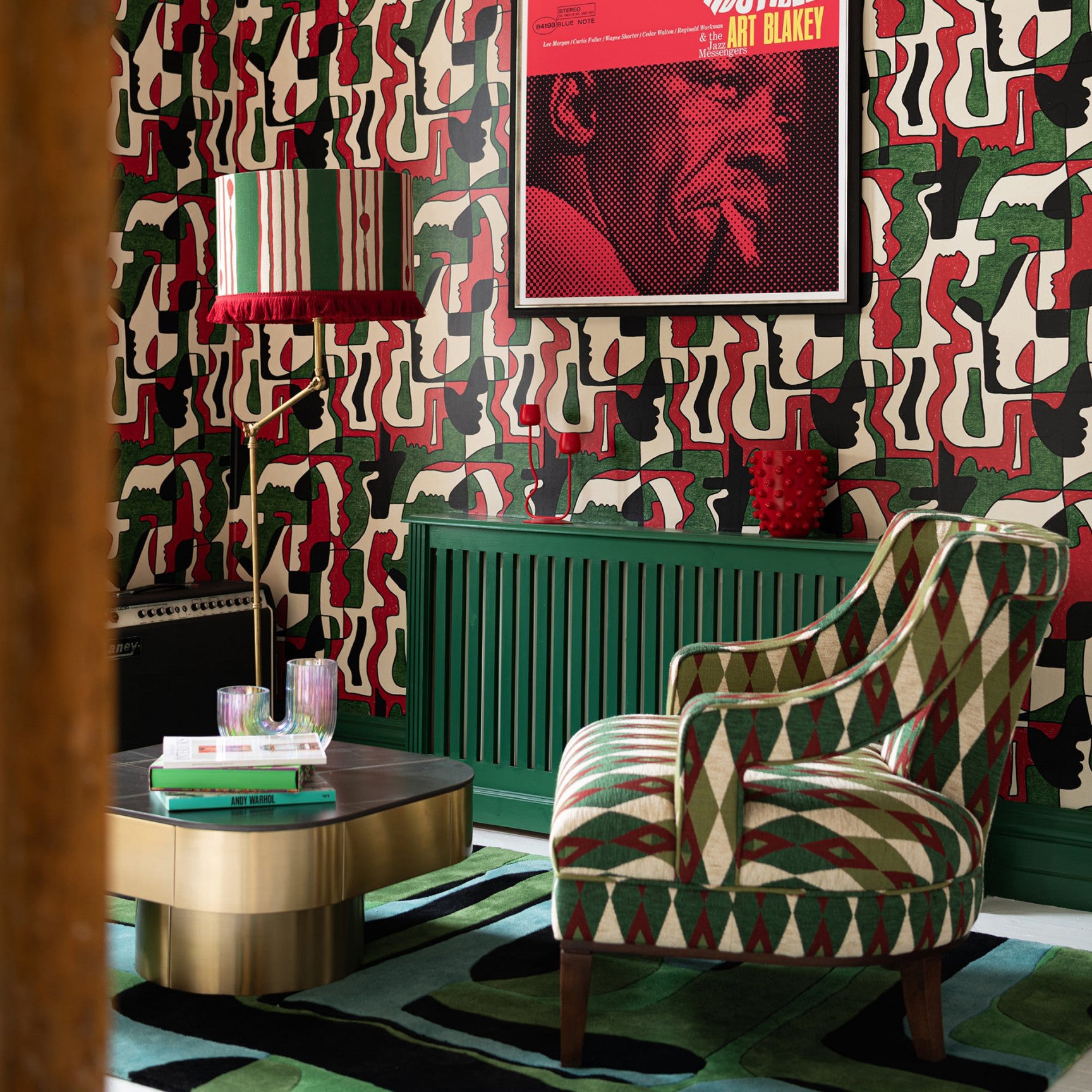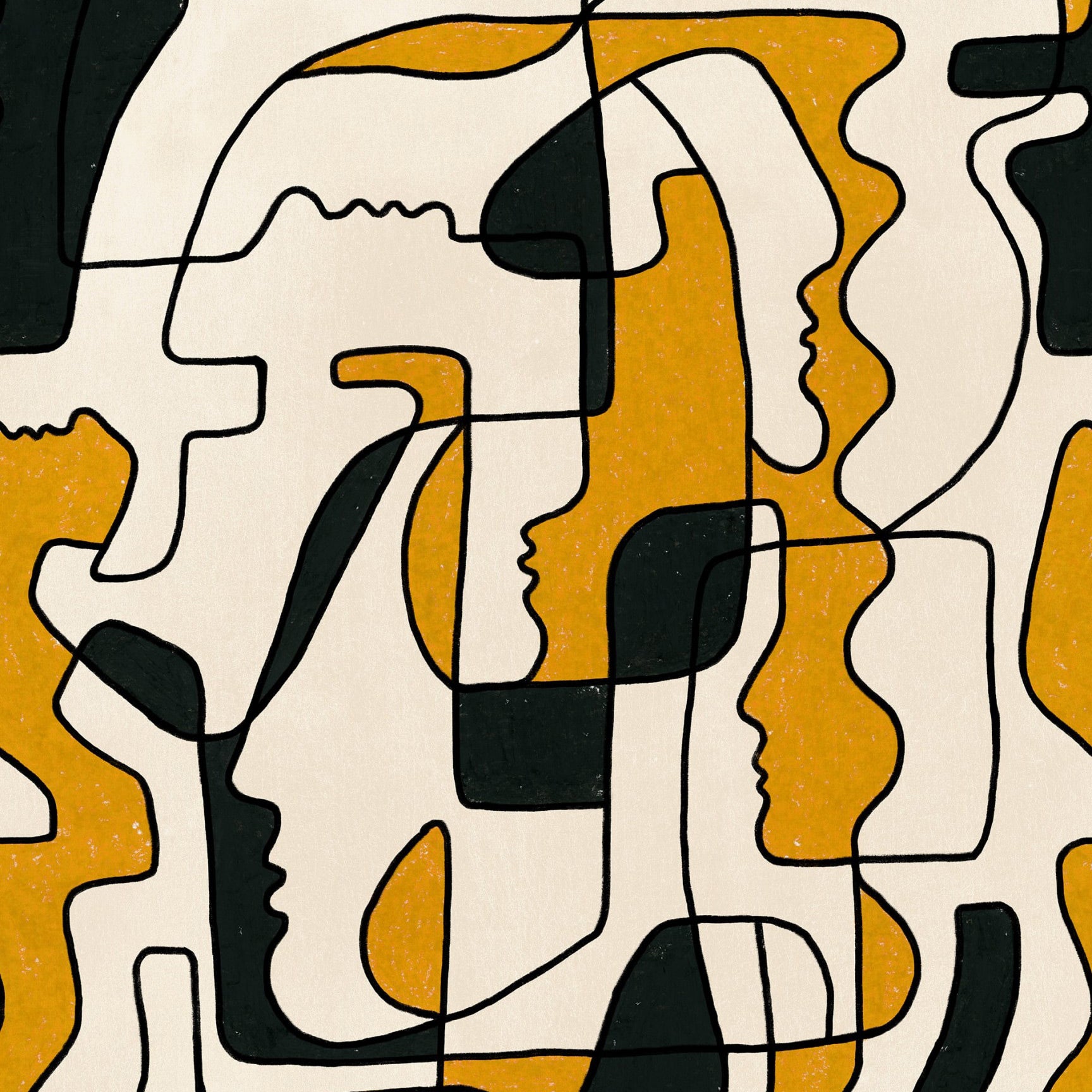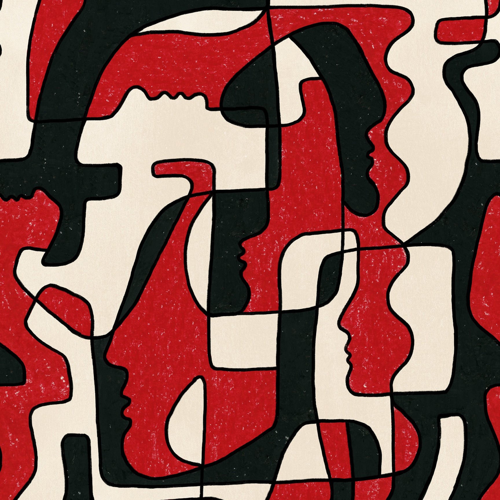 Experience nostalgia with Saudade Wallpaper. Its vibrant hues and abstract design add flamboyant opulence to your home. The print's abstract take on cubism and facial profiles make it perfect for larger rooms.