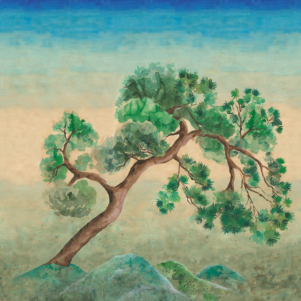 A wonderfully serene study of the ancient Oriental pine - a tree that takes root in the tiniest cracks of mountains of China yet resolutely grows and flourishes against all odds. This statement wallpaper is sold as 4 x matching lengths to be hung in sequence to create a complete panel 280cm wide x 300cm high. Can be joined in multiples according to your wall width and trimmed in the height if required.