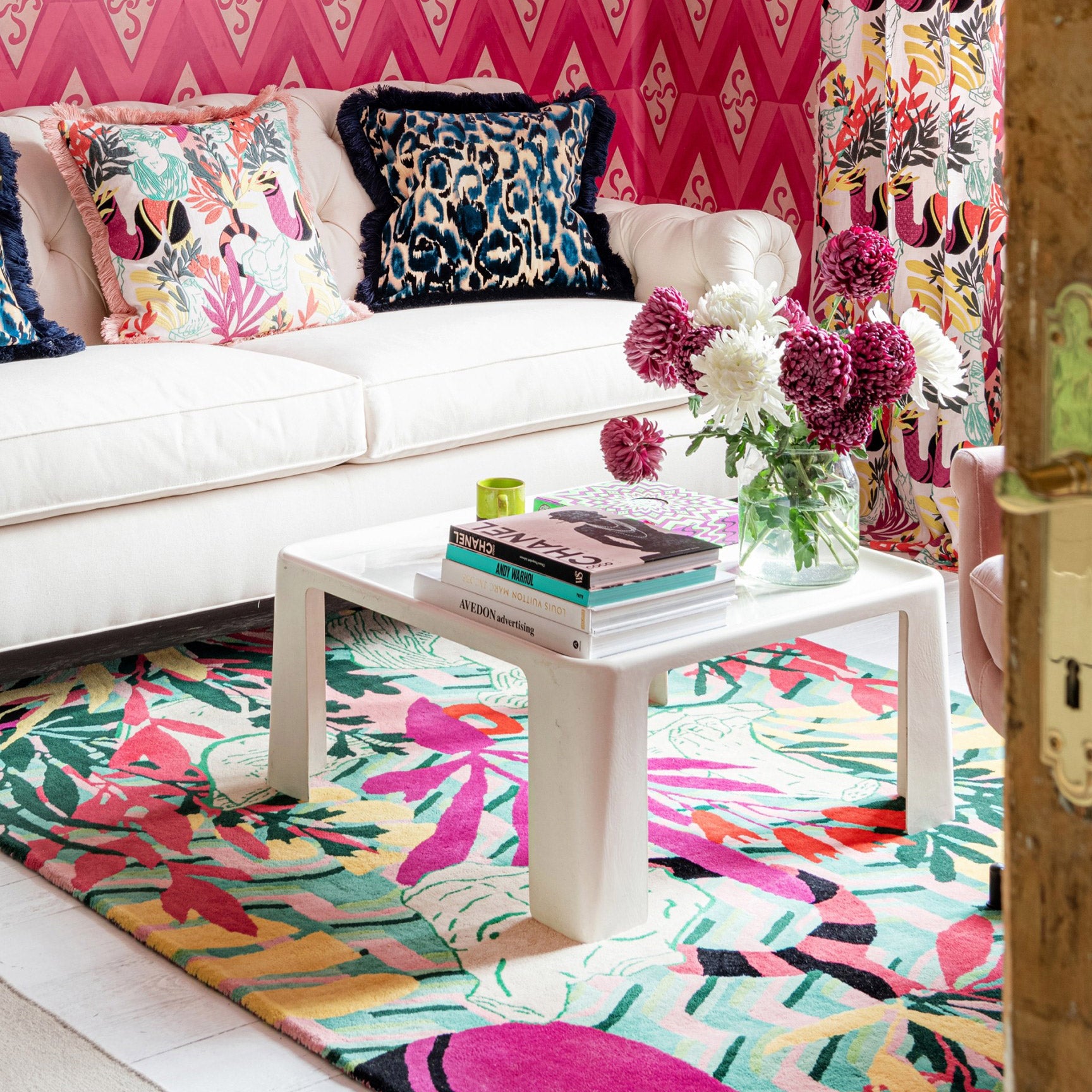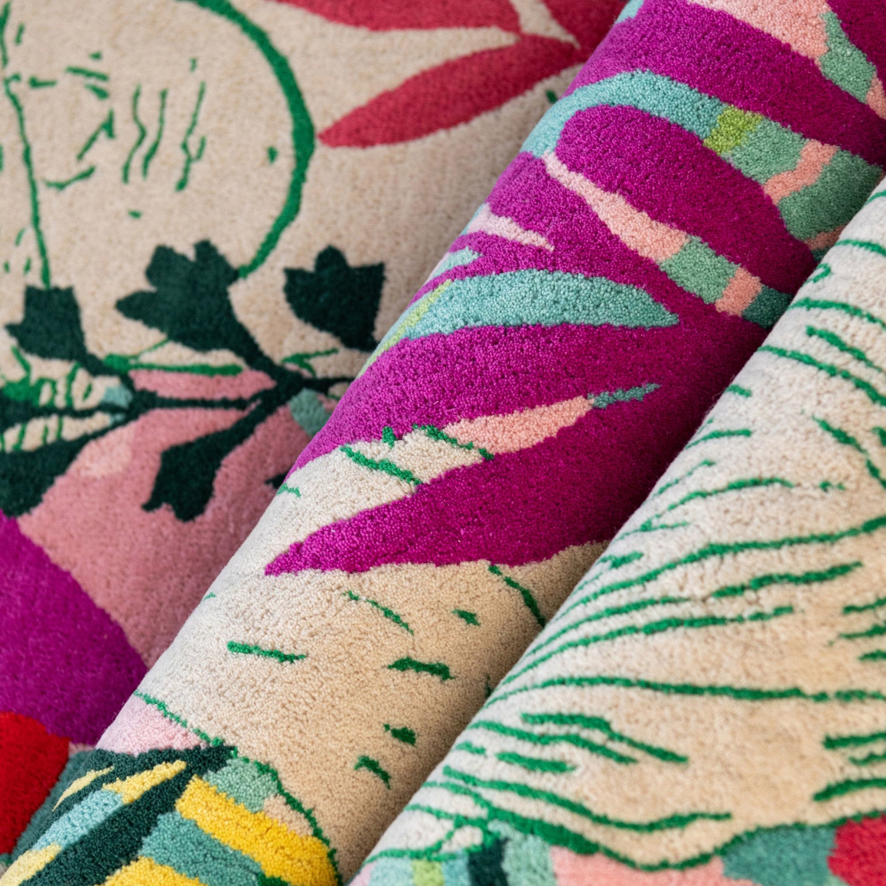 Experience the timeless grace of Statuario Hand-Tufted Wool Rug. Handwoven from 100% wool in India, this rug features a striking juxtaposition of ancient and modern elements. Vibrant floral hues are contrasted by stark white statues and clean abstract shapes, creating a captivating interplay of design. The perfect combination of classical elegance and geometric elements.