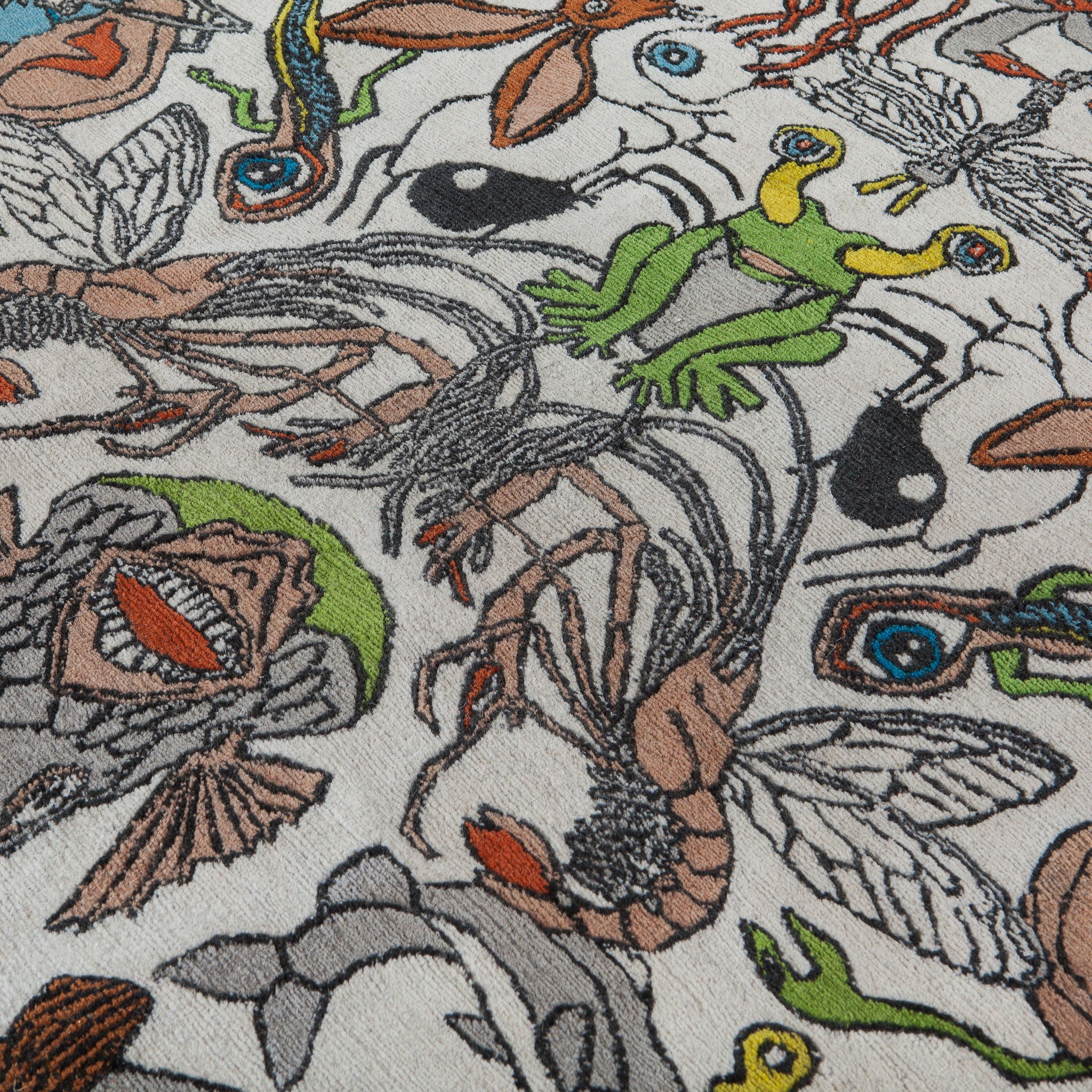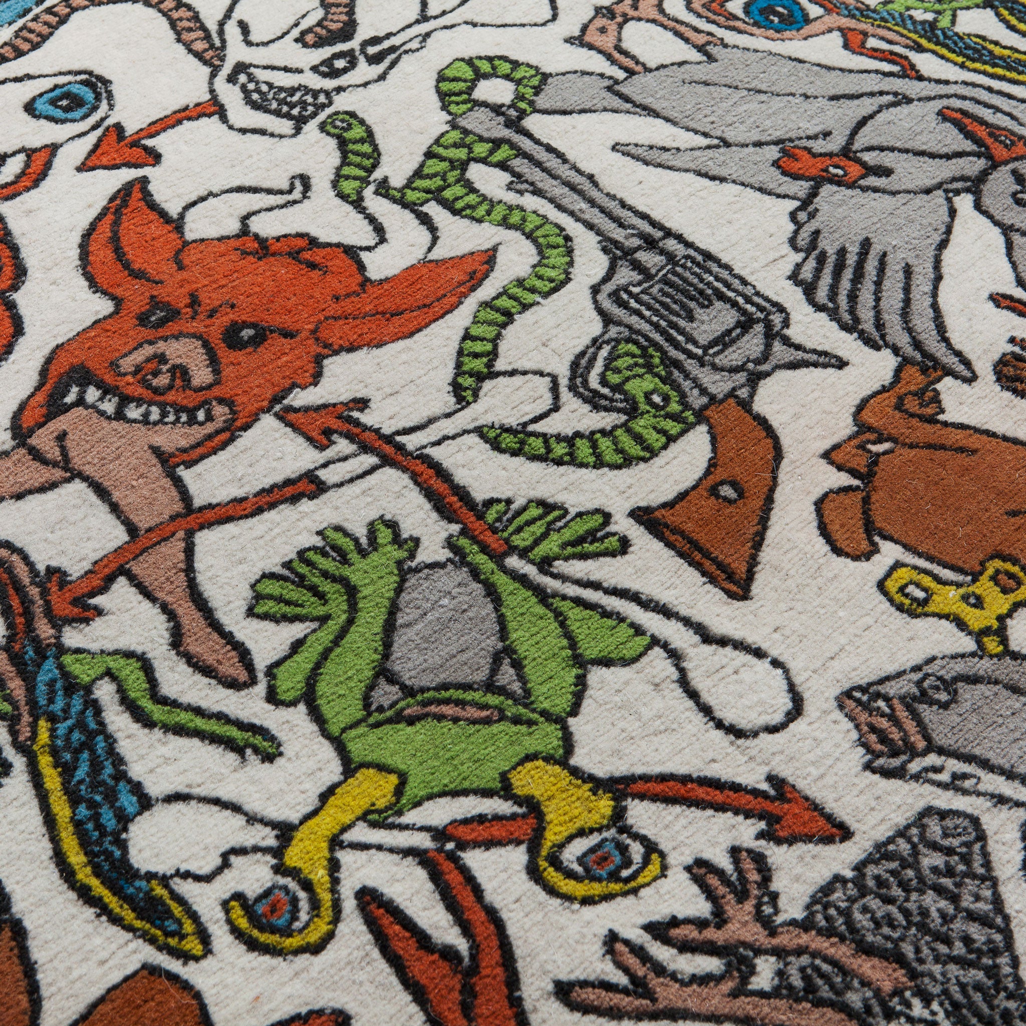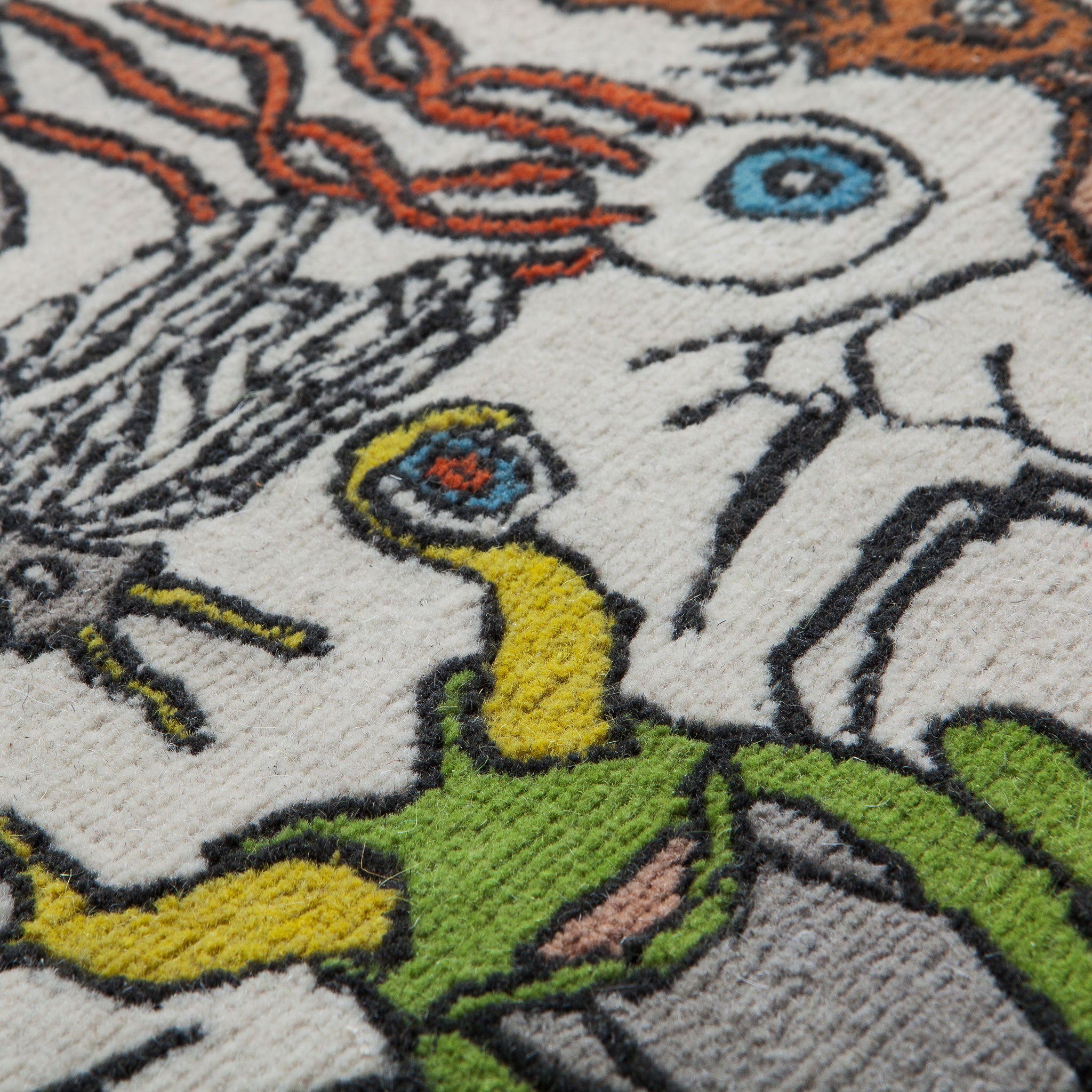 At first sight Studio Job's Underworld design looks polychrome and harmless but when you look closer you learn the different characters are all out of their normal context and manipulated: freaks of nature. The rectangular rug, designed for Nodus is hand-knotted in Nepal and features 250 knots per square inch.