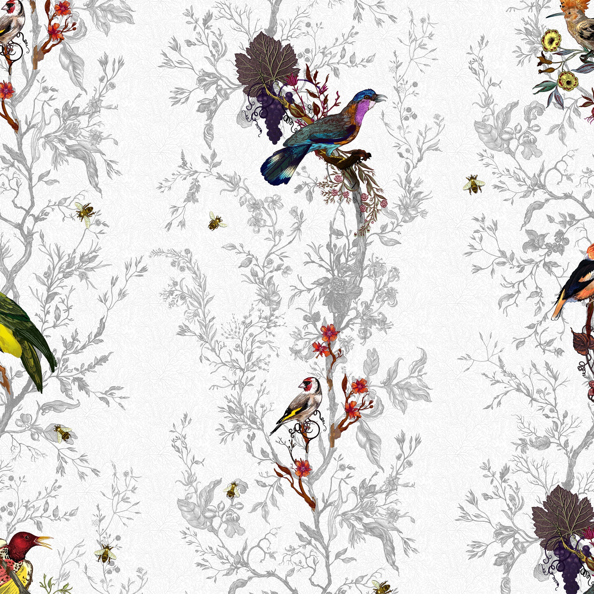 From Glasgow-based Timorous Beasties, this delicate and ornate wallpaper features a subtle base palette that is brought to life with a colourful variety of beautifully illustrated birds and bees. Available in eight contemporary colourways.