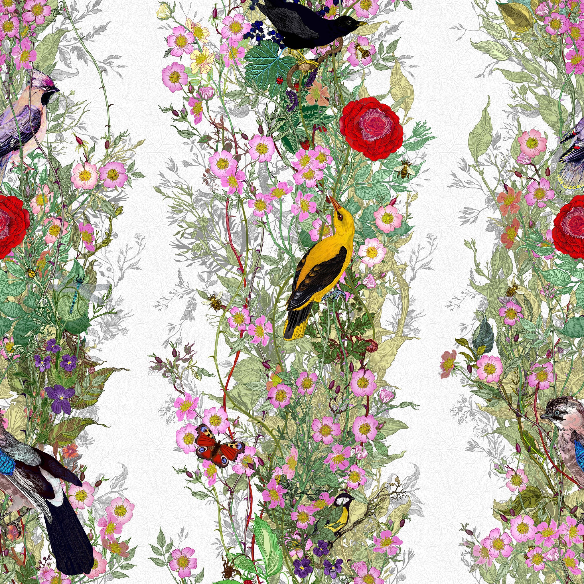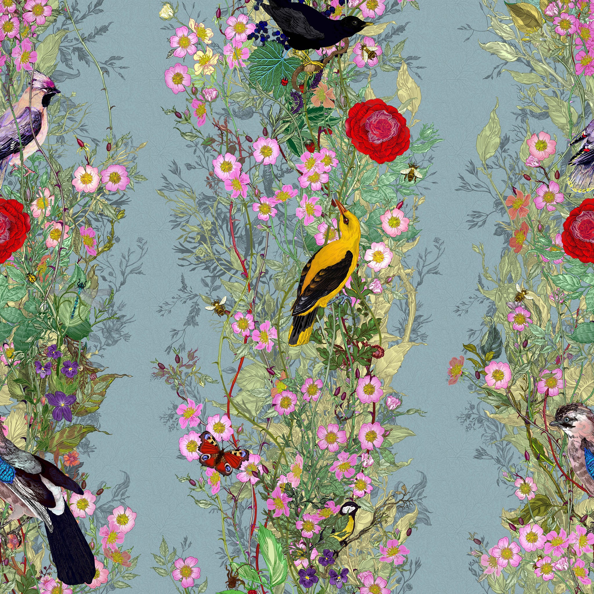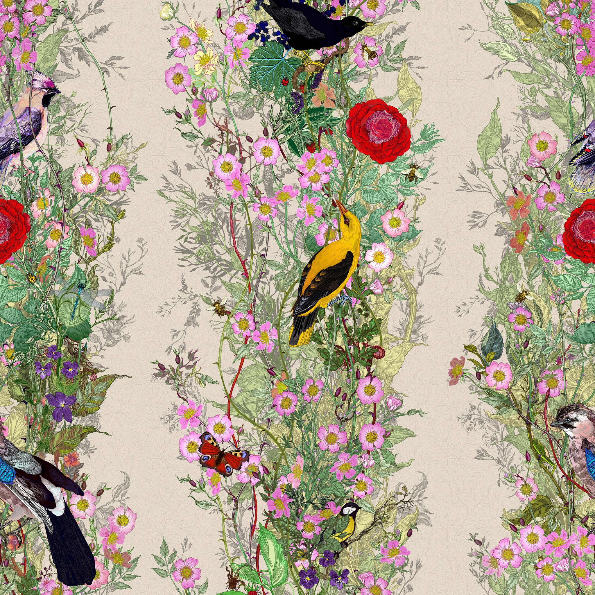 Noted for surreal and provocative textiles & wallpapers, Timorous Beasties was founded in Glasgow in 1990 by Alistair McAuley & Paul Simmons. Their work can be seen as a wayward take on the often “twee” world of textiles, with heavily illustrative insects, ‘triffid’-like plants, birds and other animals.