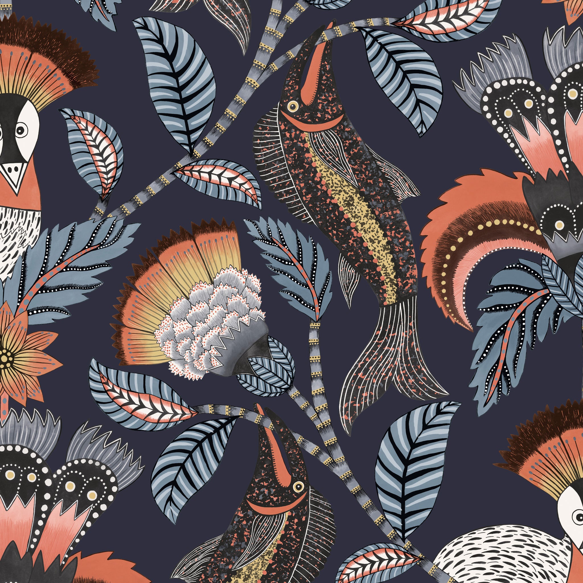This exuberantly surreal design is a tribute to a beloved legendary Ardmore artist whose lovingly hand-painted decoration helped to define the early Ardmore aesthetic.