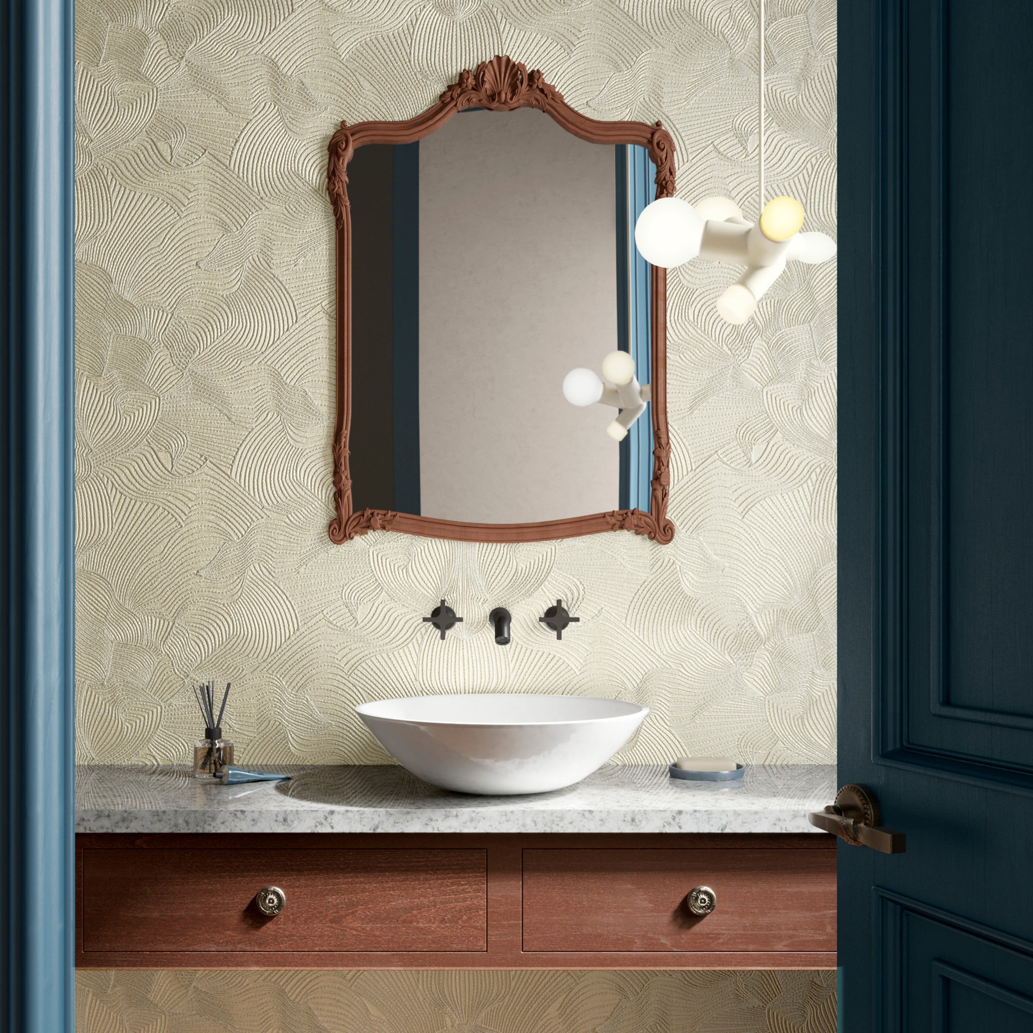 Techno Bee Embroidered is a textile wallcovering with a distinctive moiré effect created by a stitched design where the motif is embroidered onto a cotton/linen blend fabric.