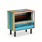 Richard Woods’ strikingly colourful wood-grain block prints are applied to Sebastian Wrong’s utilitarian furniture – reminiscent of mid-century designs – in this seminal collaboration between artist and designer.