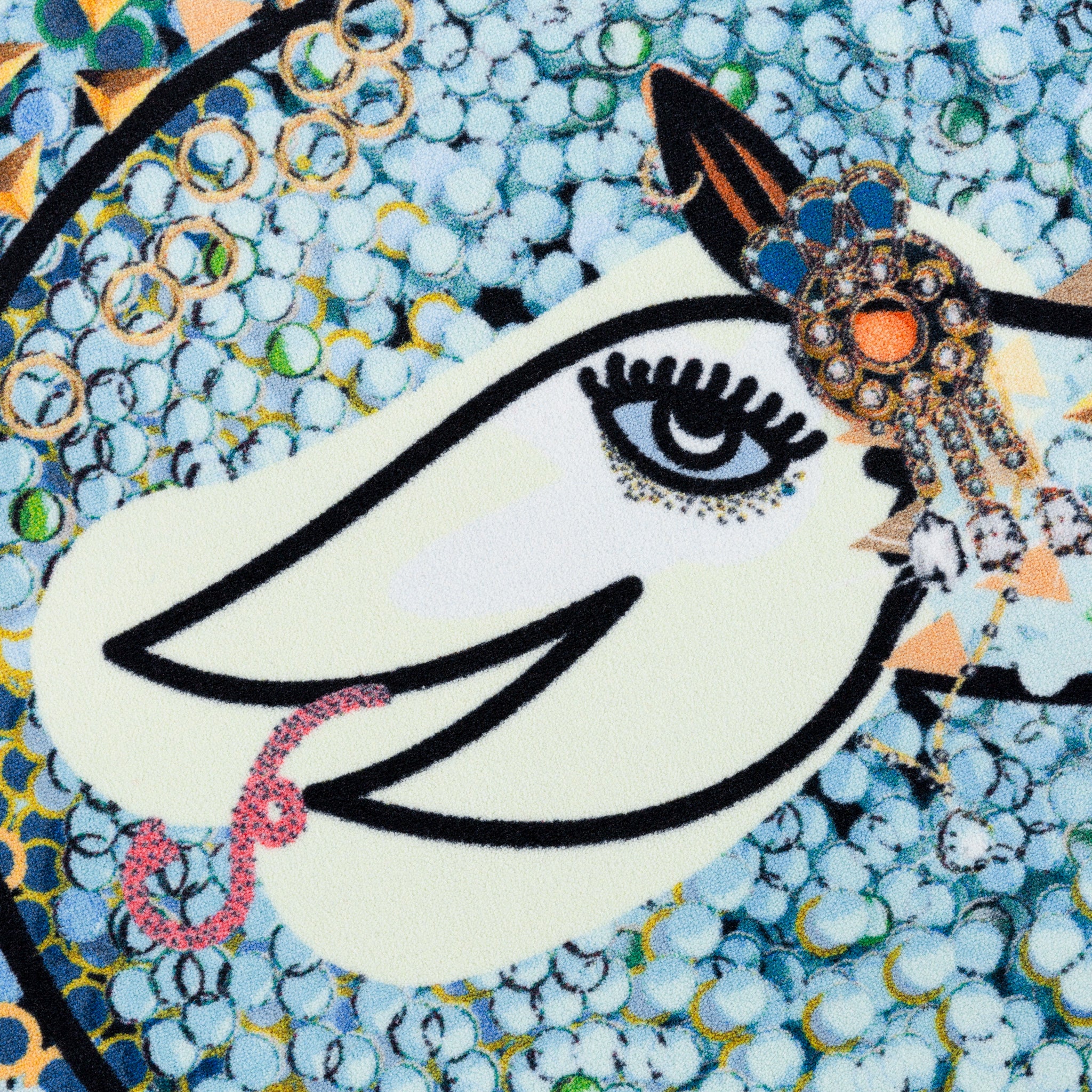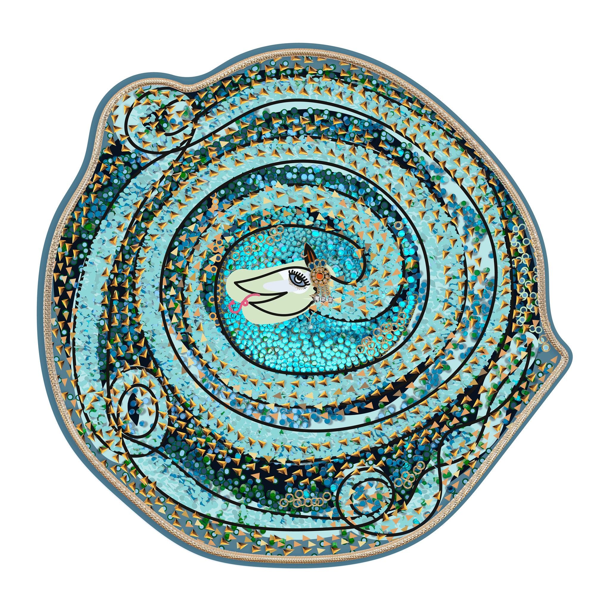 Part of the Bistano Collection by Antonio Arico for Moooi Carpets, the Adriano rug depicts a textile mosaic adorned with sparkling jewels, broken stars and transparent daises made of glass - a playful serpent takes centre stage. Available in two sizes and three finishes; Polyamide, Wool and Soft Yarn.